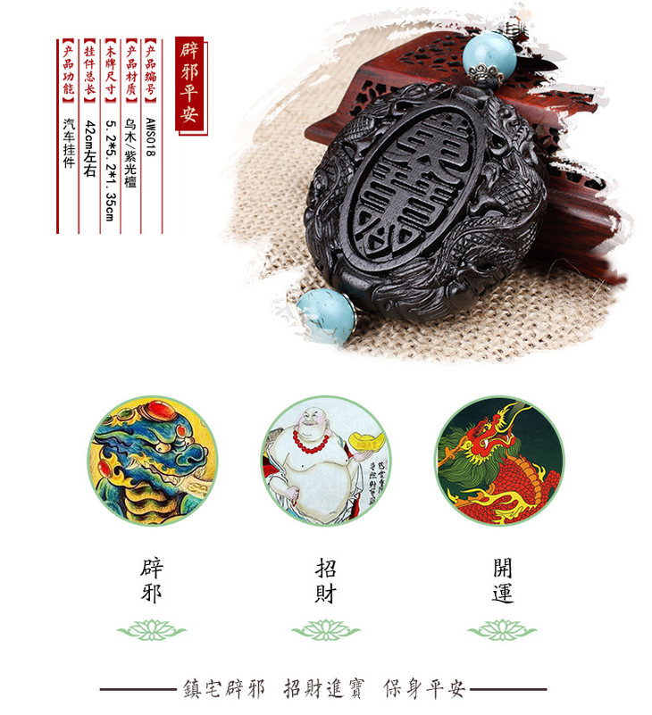 【汽车用品】镇店之宝 汽车乌木挂件 出入平安立体雕刻汽车装饰用品 AWS018