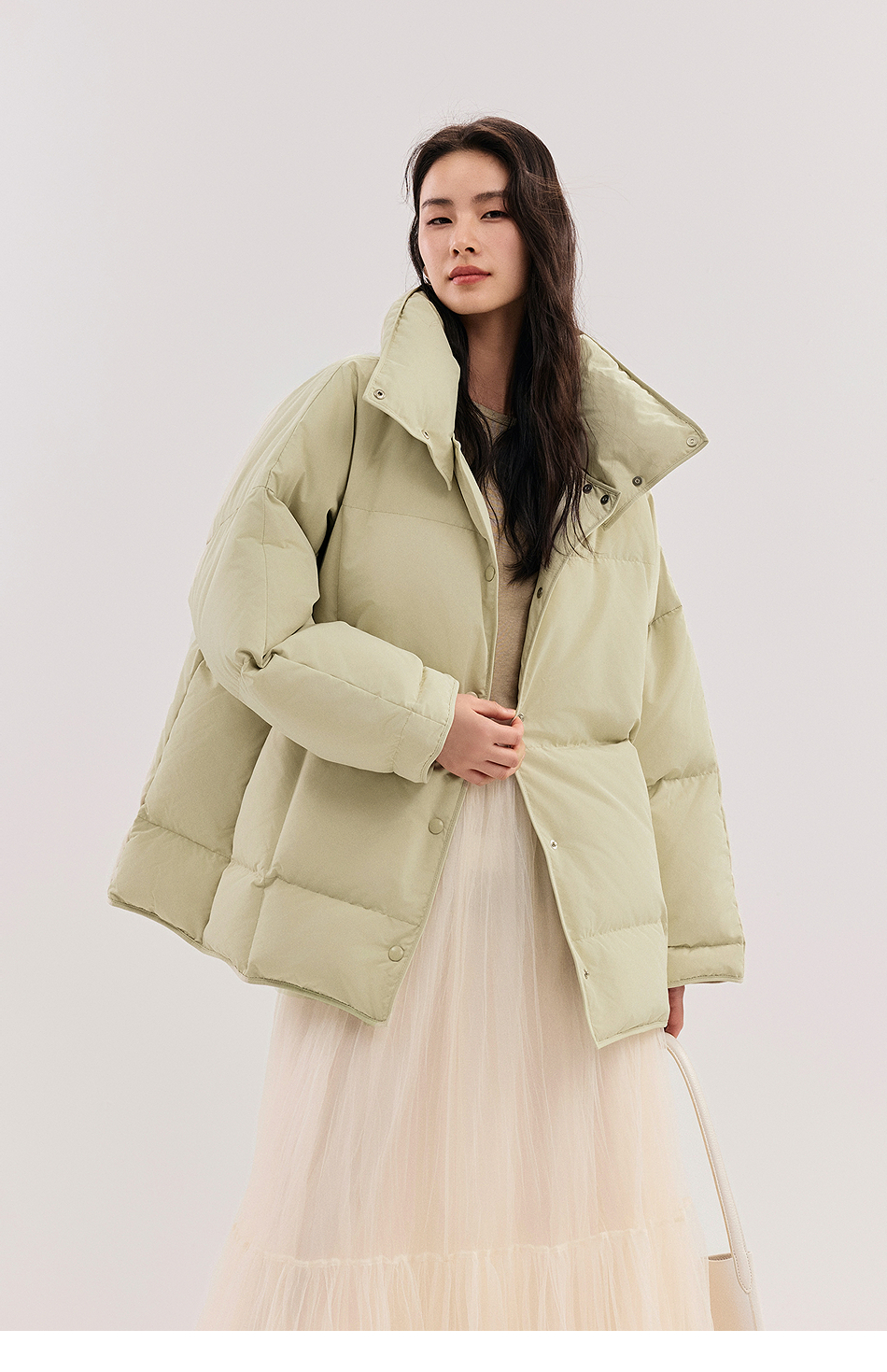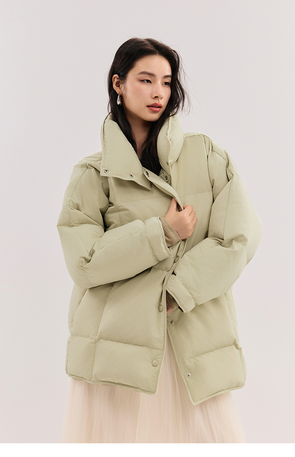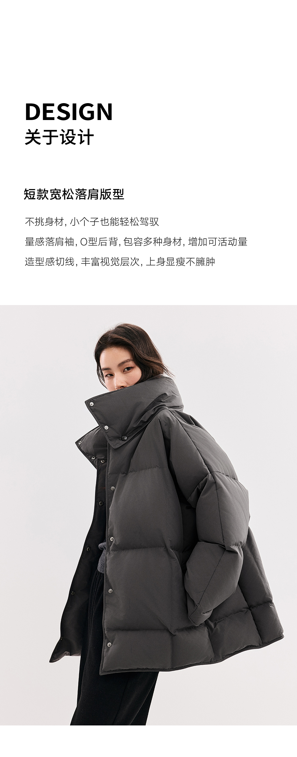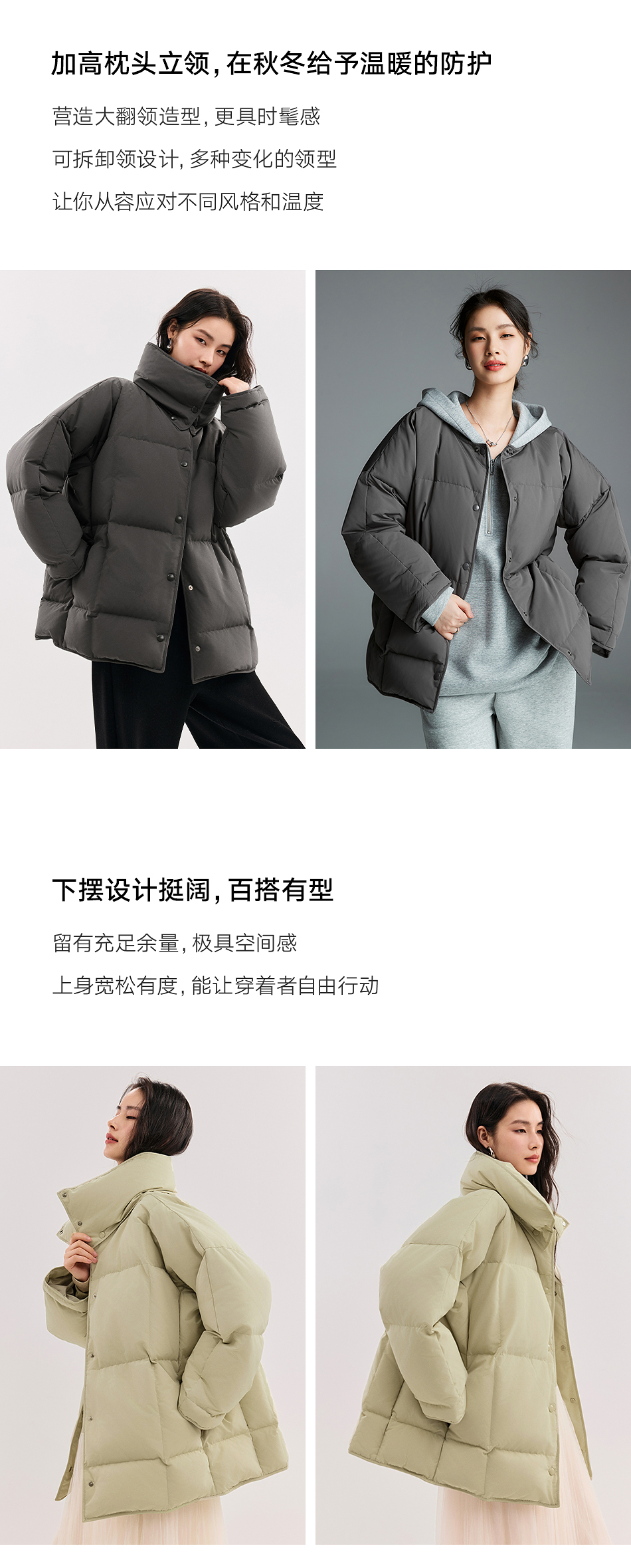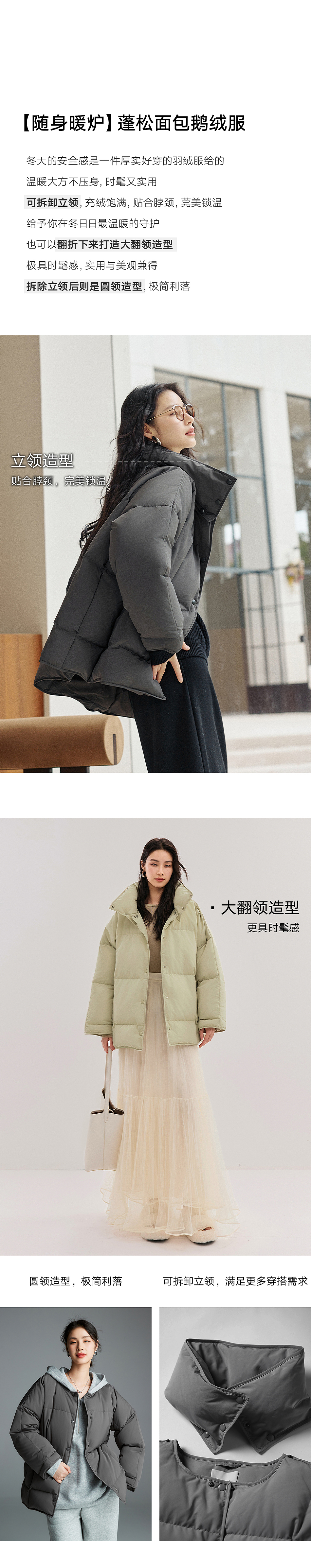 棉仓347615001-立领重磅宽松面包服女90白鹅绒秋冬可拆卸领羽绒服短款外套