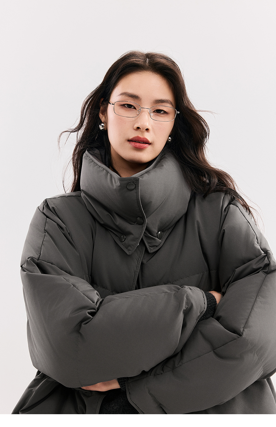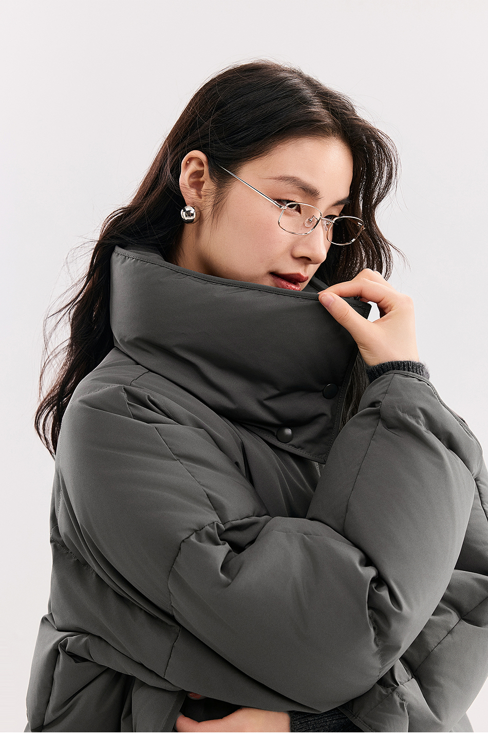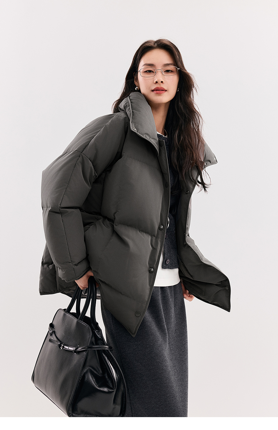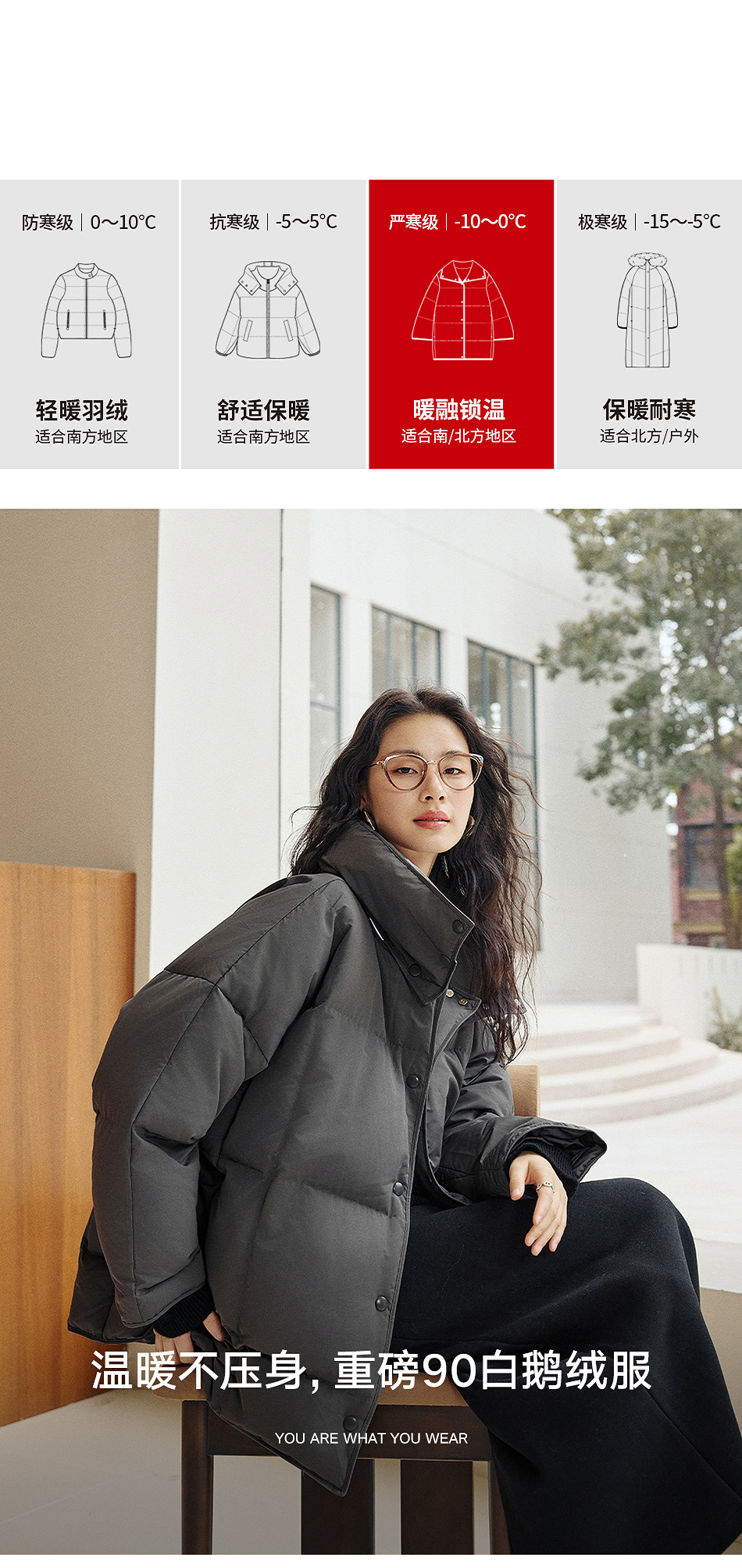 棉仓347615001-立领重磅宽松面包服女90白鹅绒秋冬可拆卸领羽绒服短款外套