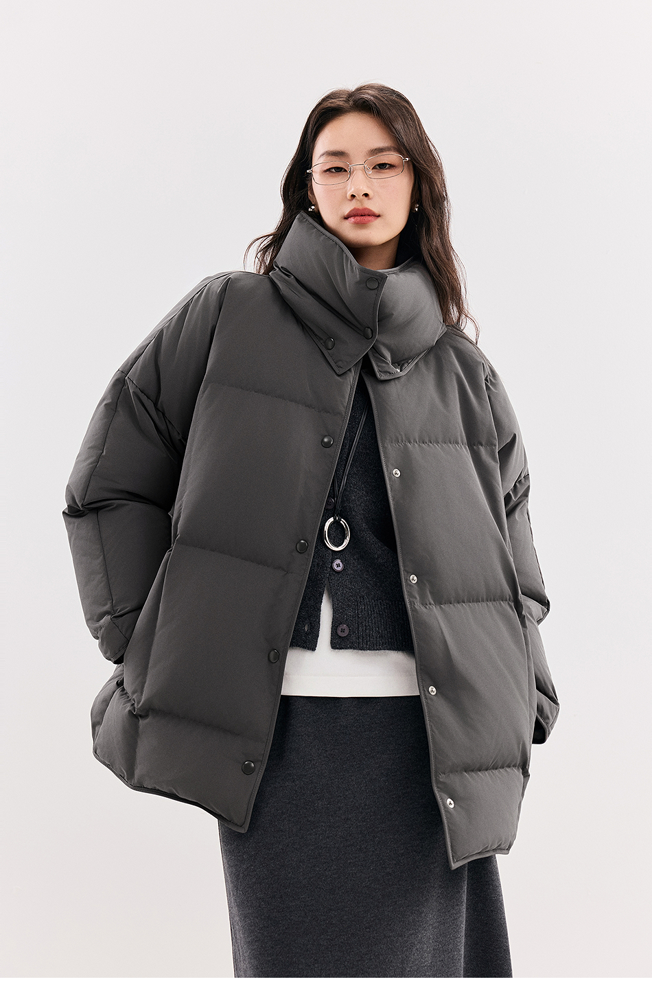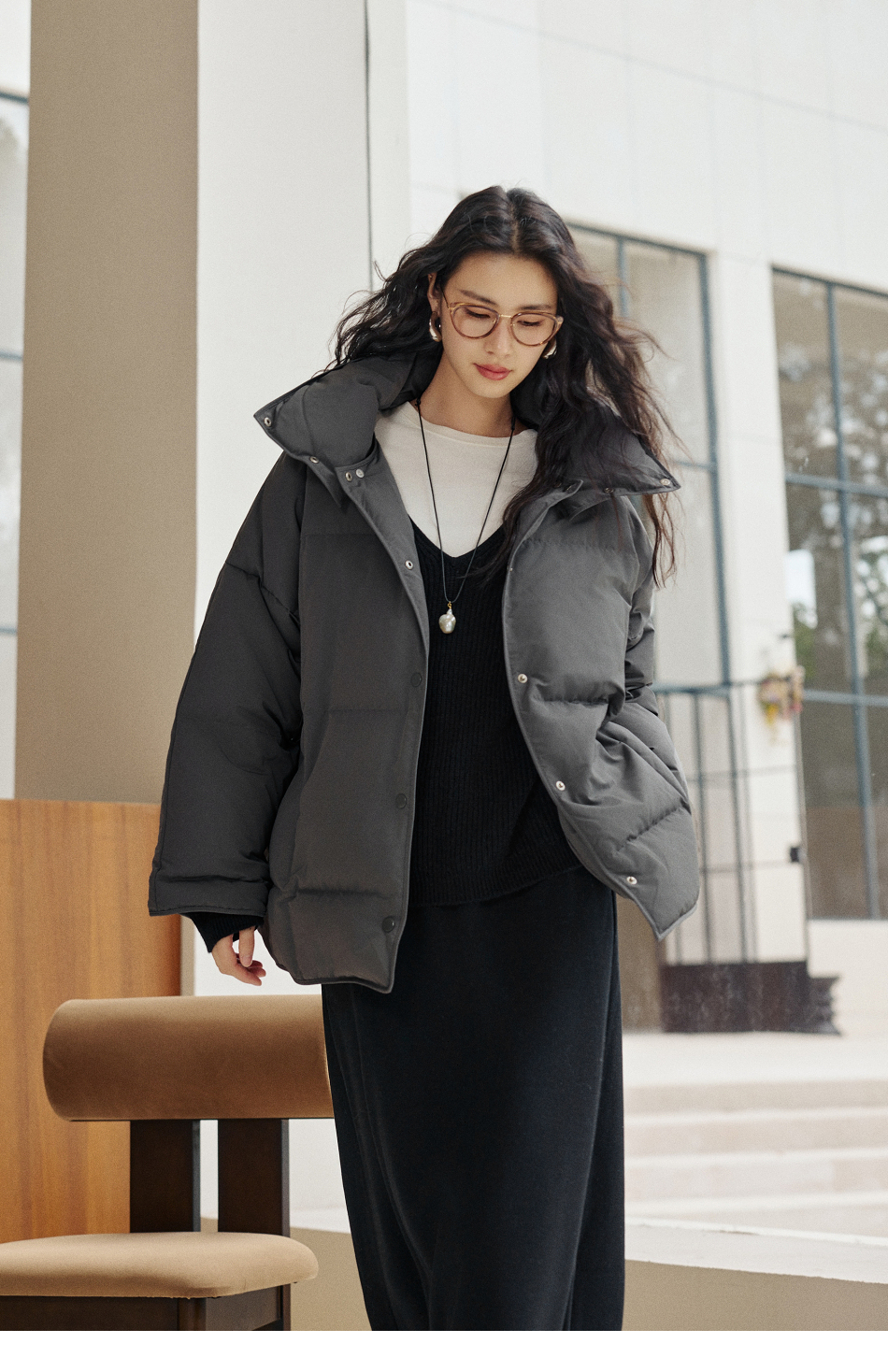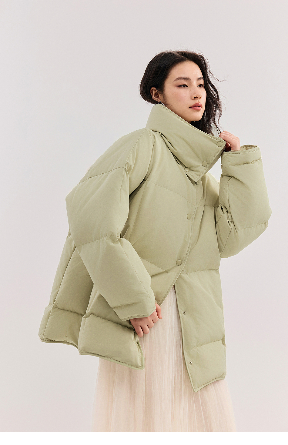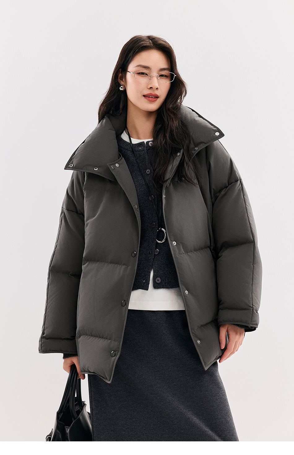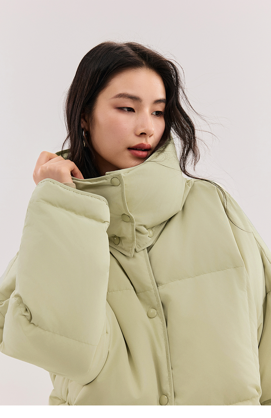 棉仓347615001-立领重磅宽松面包服女90白鹅绒秋冬可拆卸领羽绒服短款外套