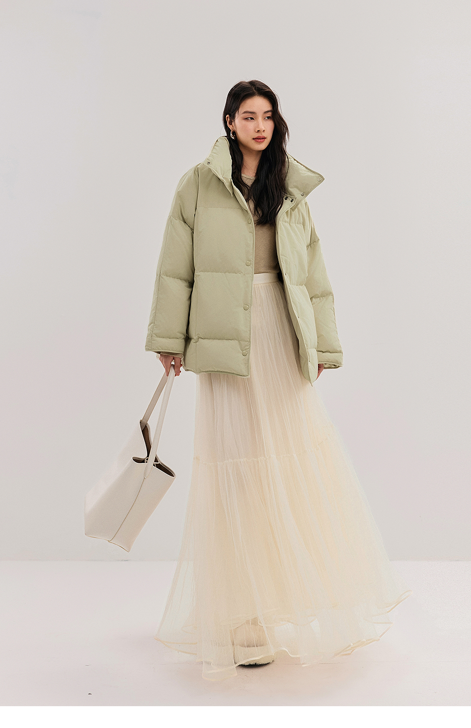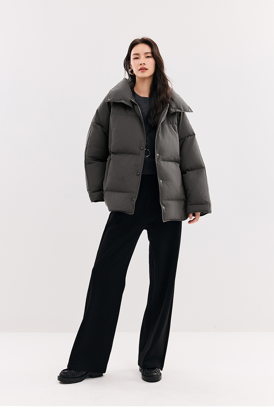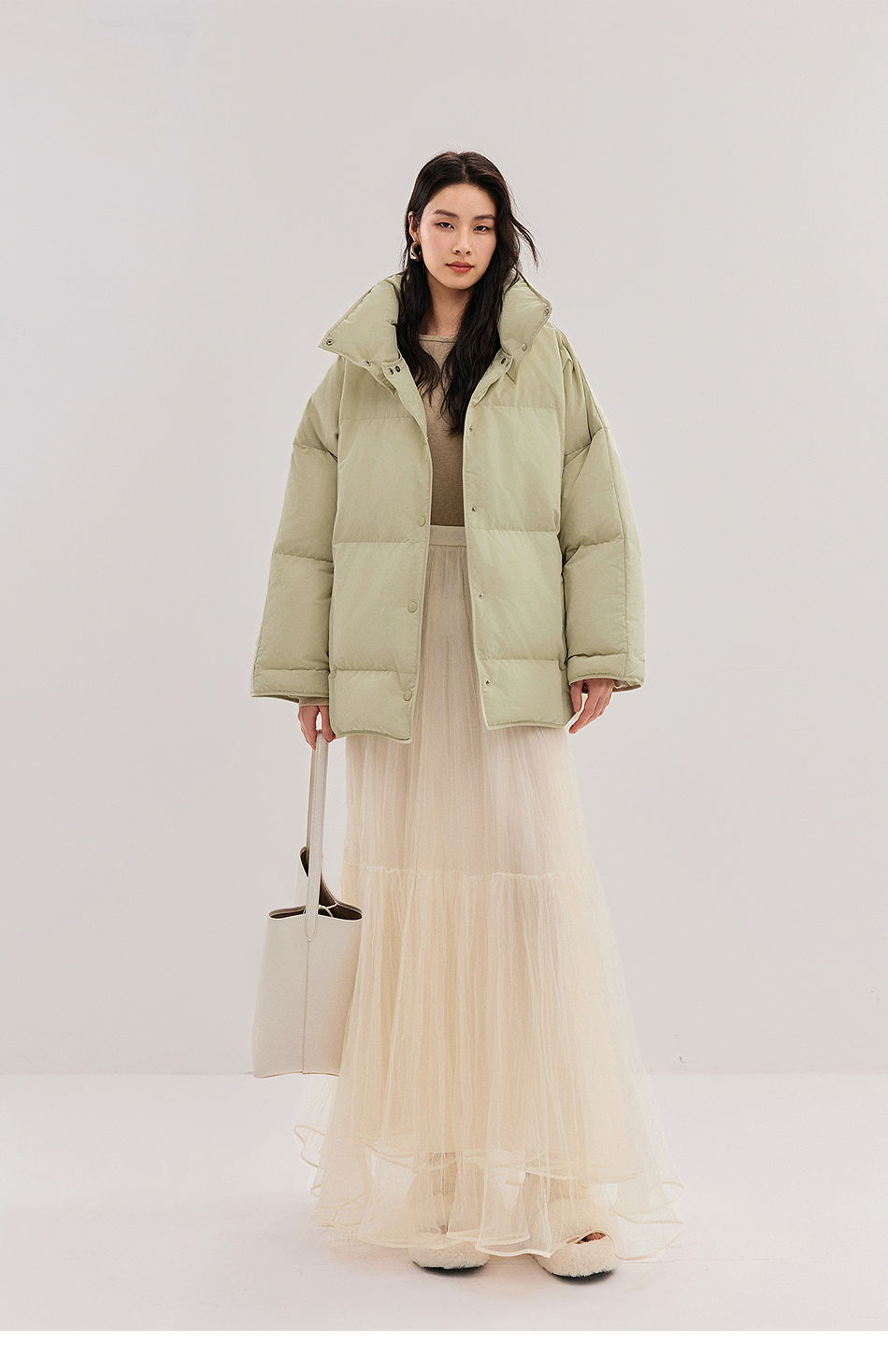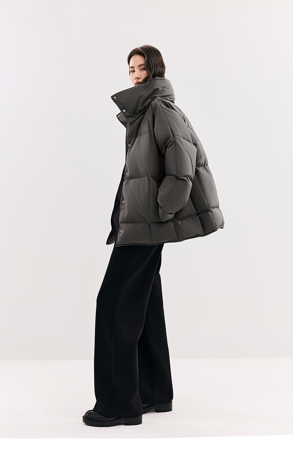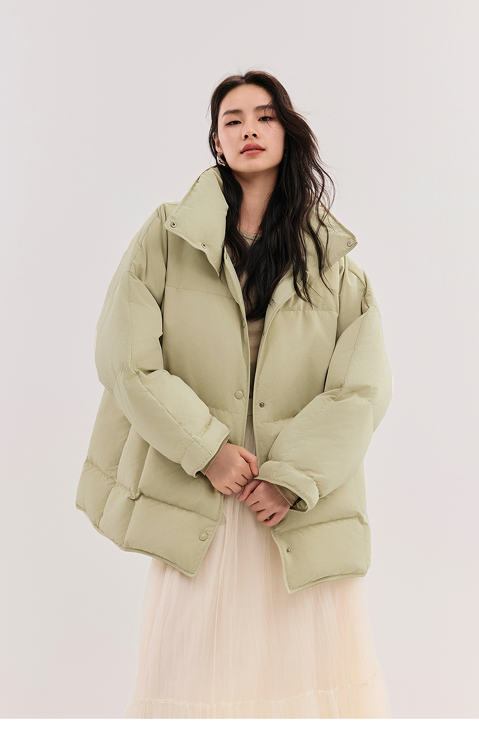 棉仓347615001-立领重磅宽松面包服女90白鹅绒秋冬可拆卸领羽绒服短款外套
