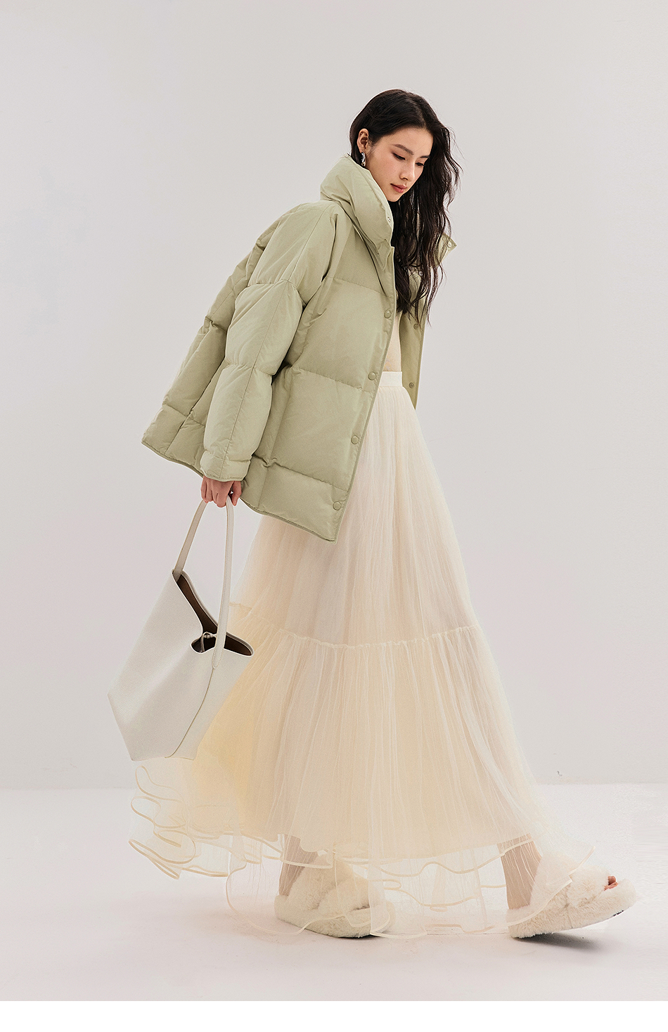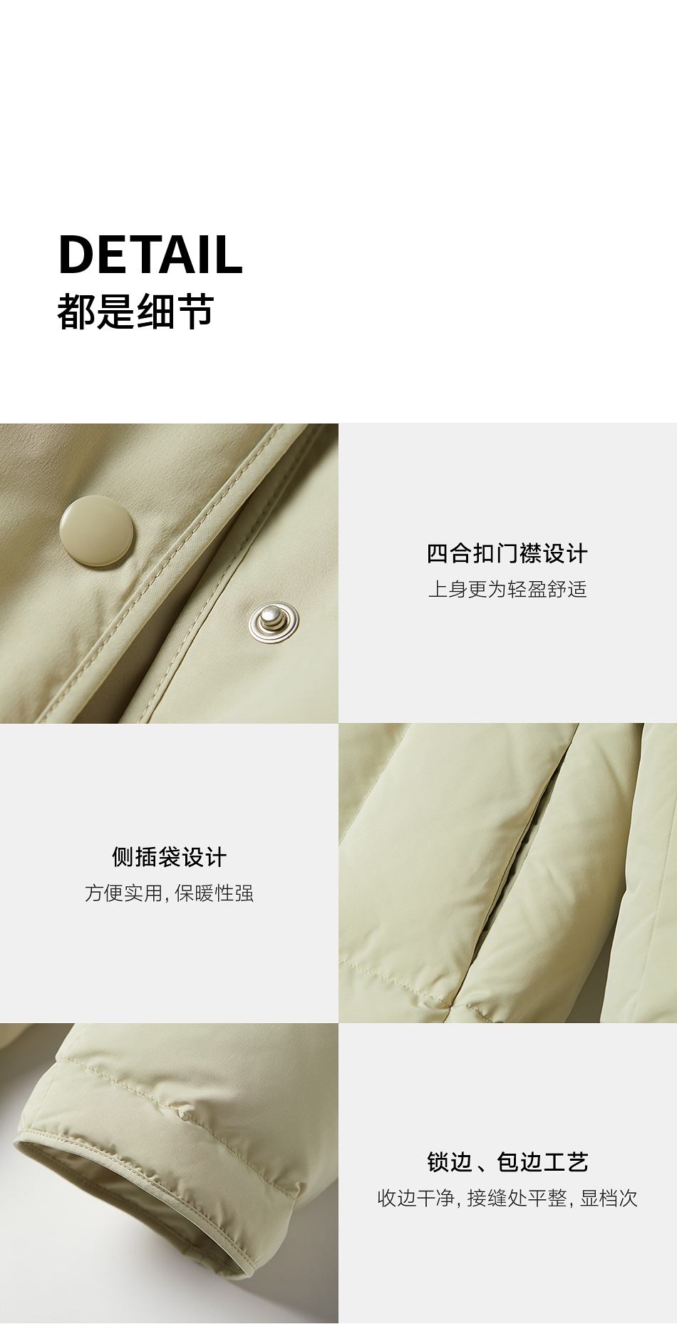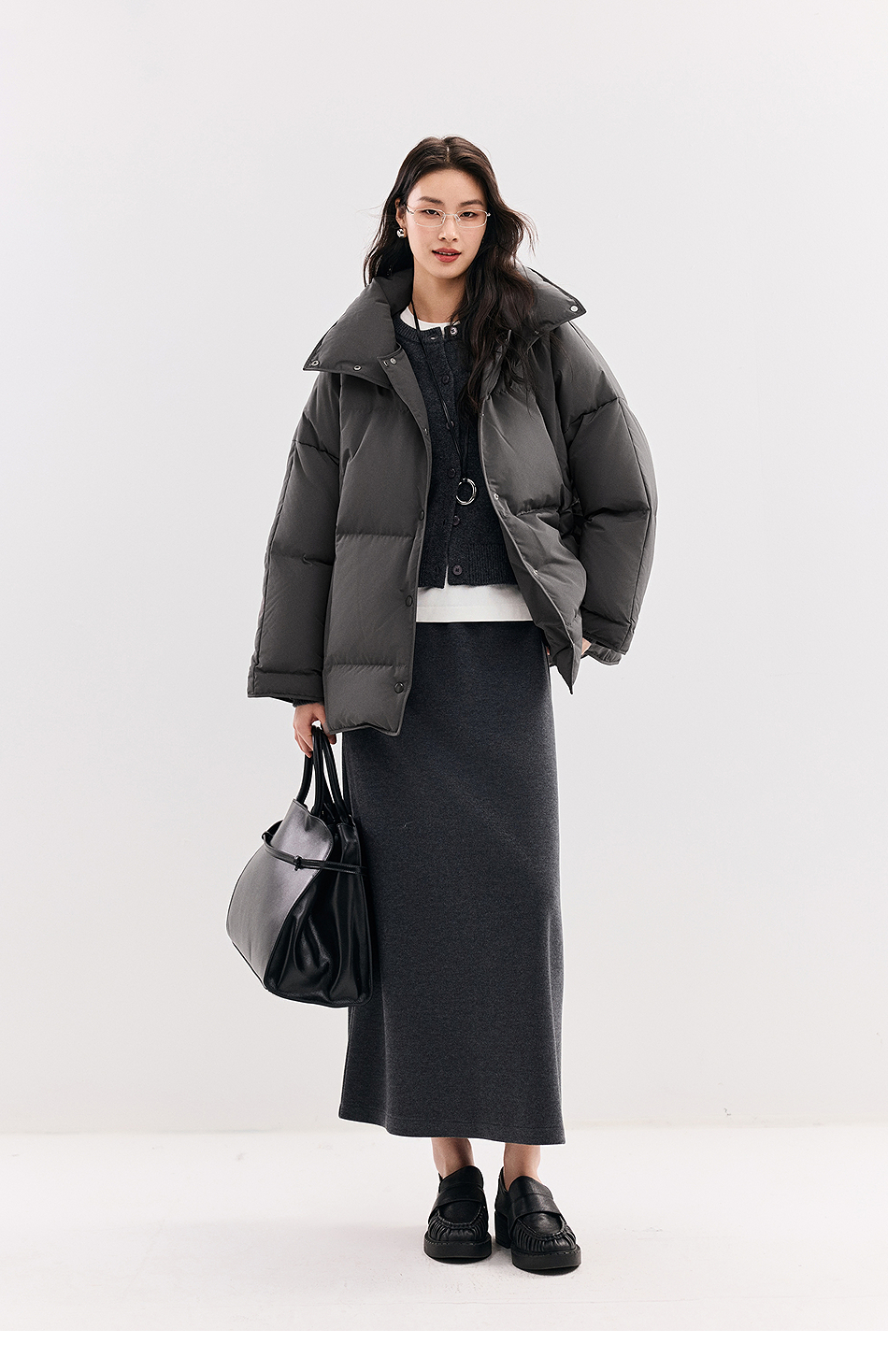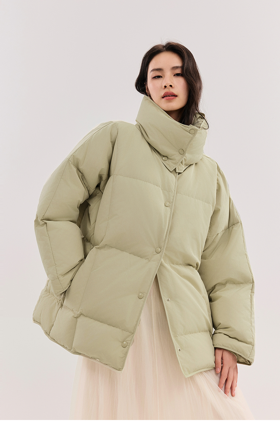 棉仓347615001-立领重磅宽松面包服女90白鹅绒秋冬可拆卸领羽绒服短款外套
