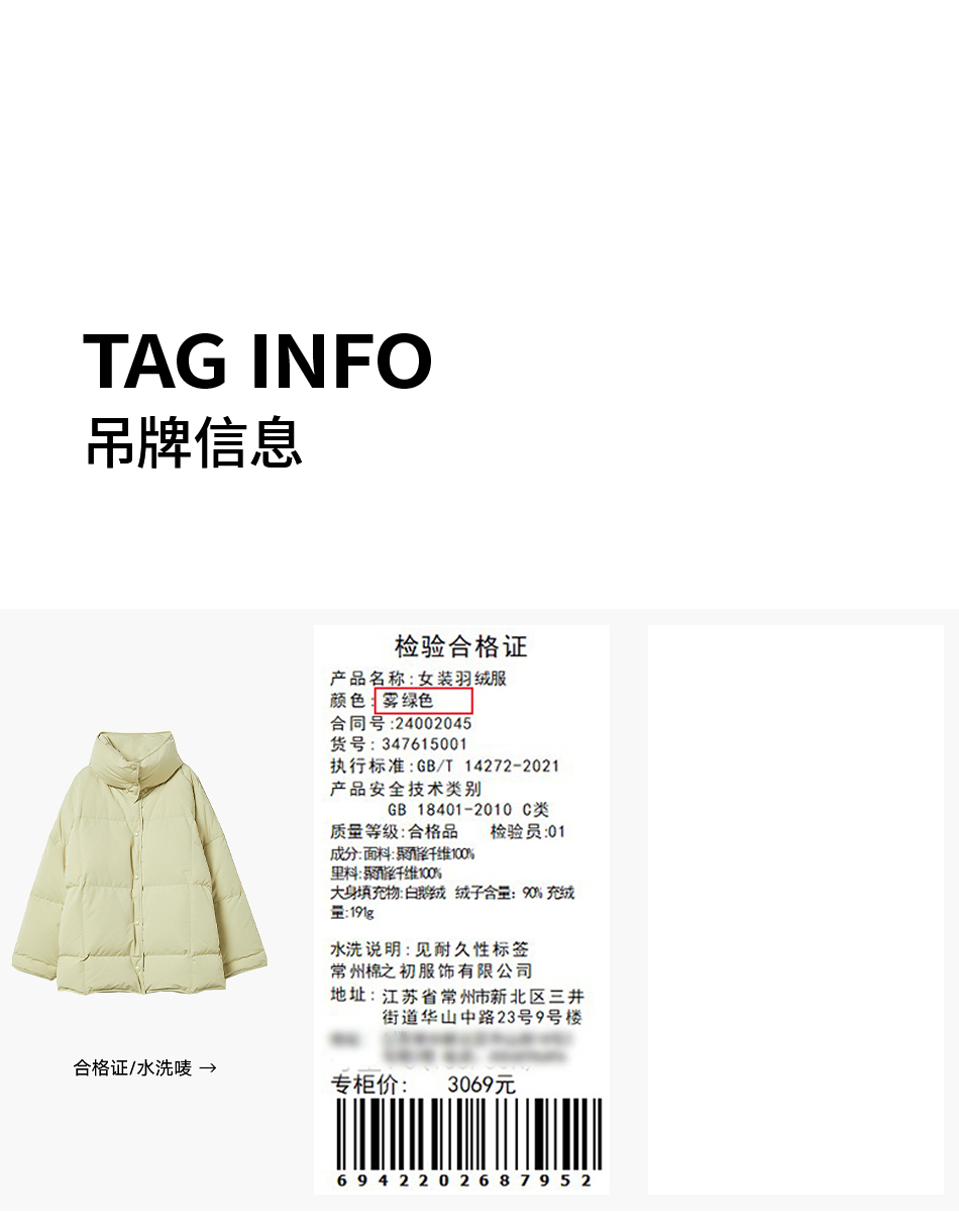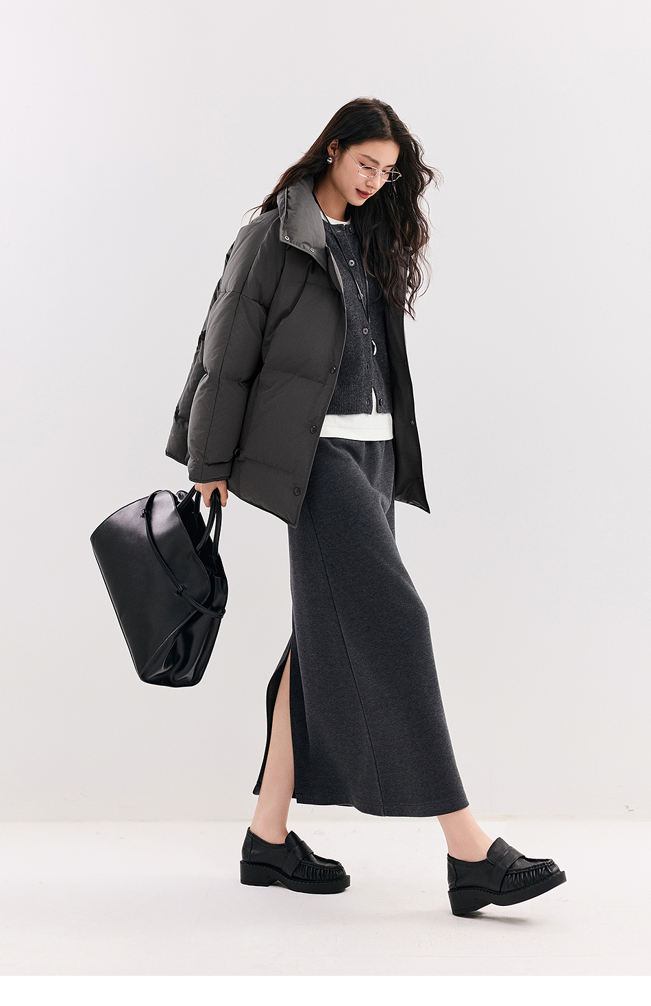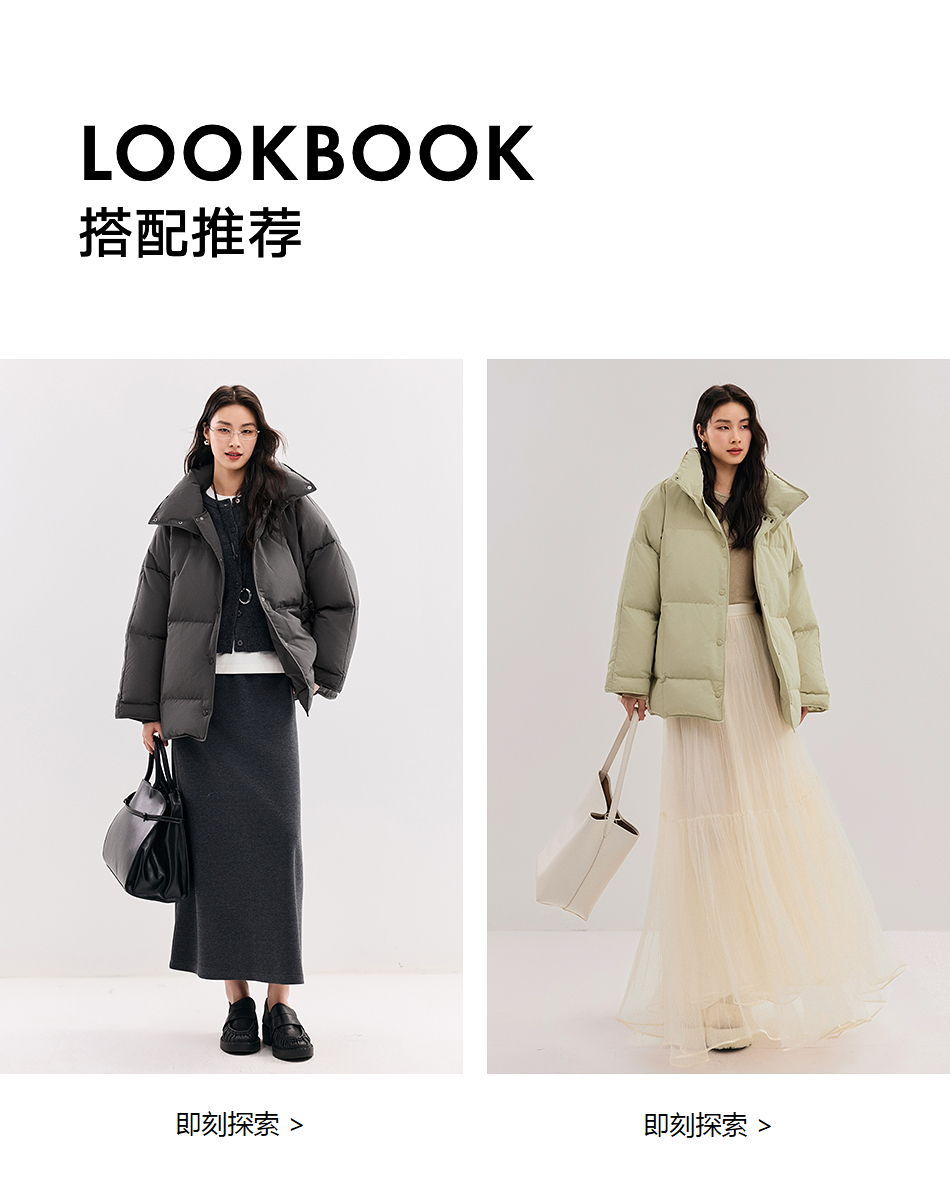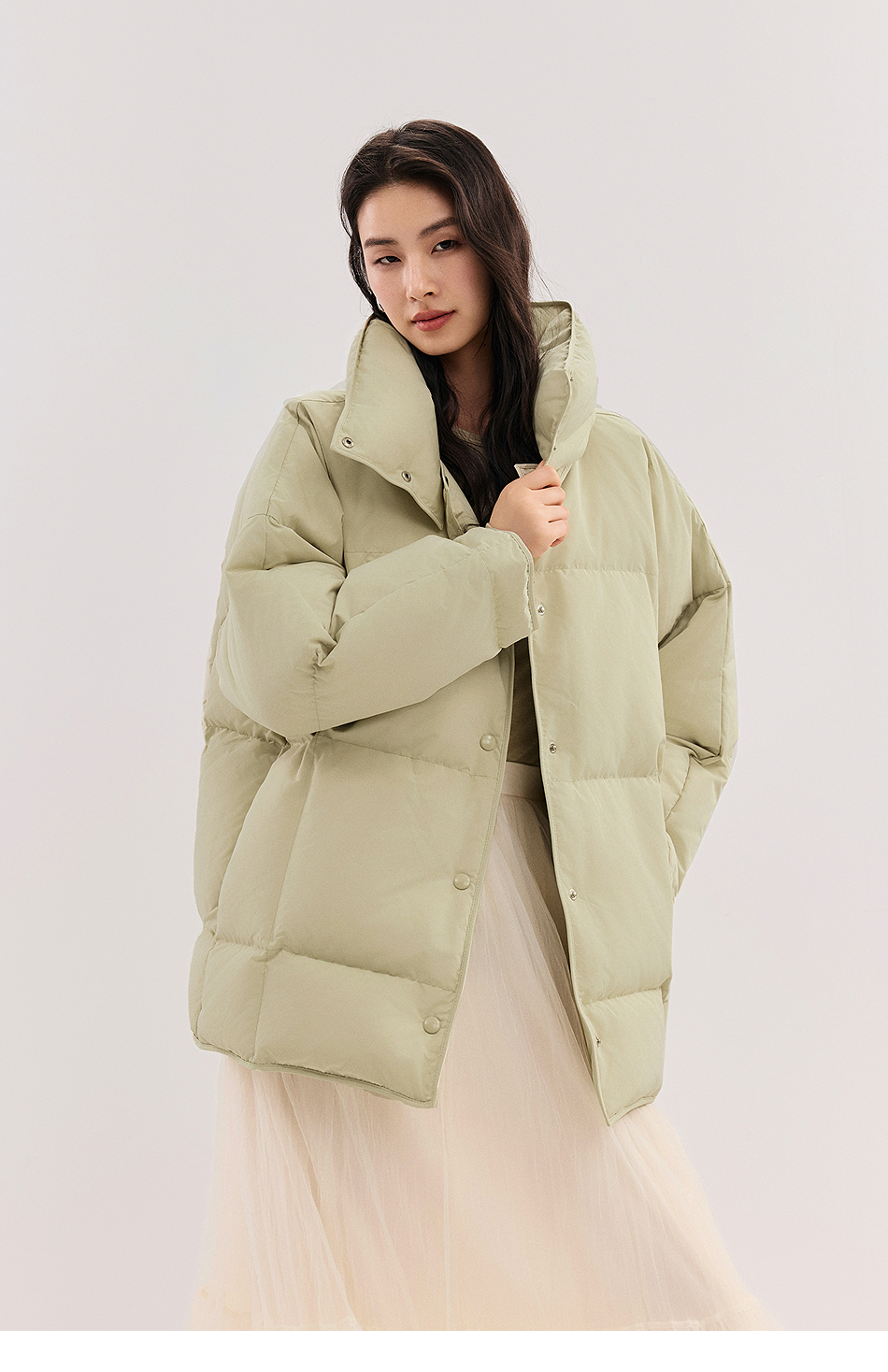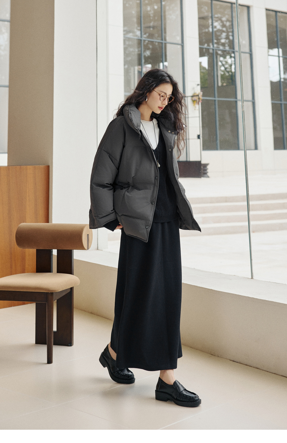棉仓347615001-立领重磅宽松面包服女90白鹅绒秋冬可拆卸领羽绒服短款外套