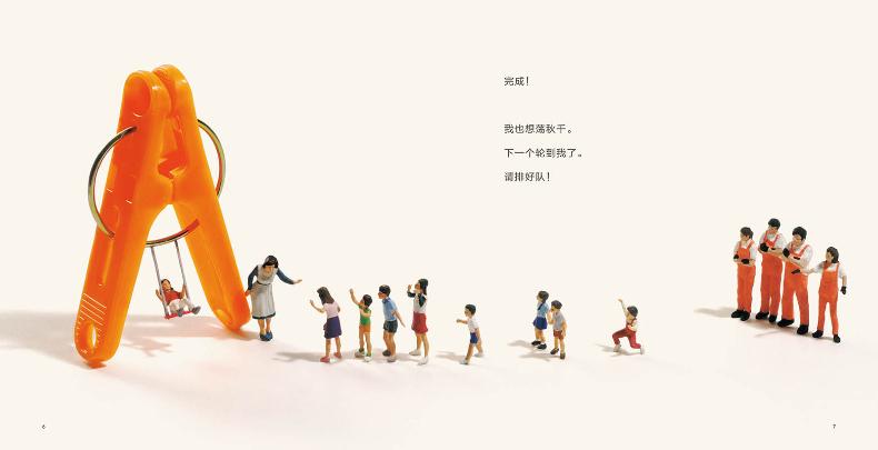 1.说到作者田中达也,大家都不陌生,他擅长用日常小物和微型人偶打造充满想象力的微缩世界,作品受到全世界观众的喜爱,全球粉丝已超390万,被中国网友亲切地称为“脑洞之王”。2.本书是田中达也的首部绘本作品,已授权英文版、韩文版和繁体中文版版权。 获MOE绘本屋大奖和新人奖。3.田中达也巧妙地运用了场景的转换,比如,明明是一个衣夹,但换一个场景,就变成了秋千。明明是牙刷,换一个场景就变成了路灯。伴随着场景的变换,搭配上不同姿势的小人偶,一个个日常中平凡的物件焕发出了不一样的光彩。4.作者也藏在书的某一页中,看看细心的你是否可以找到他?