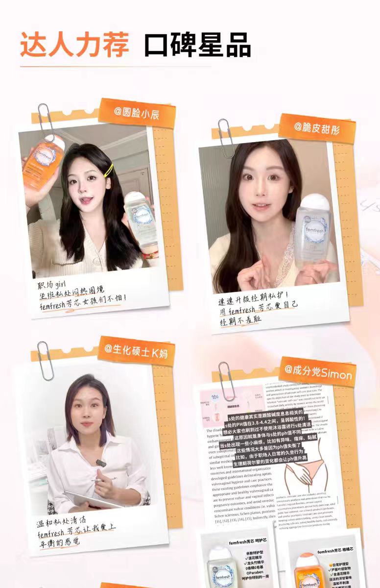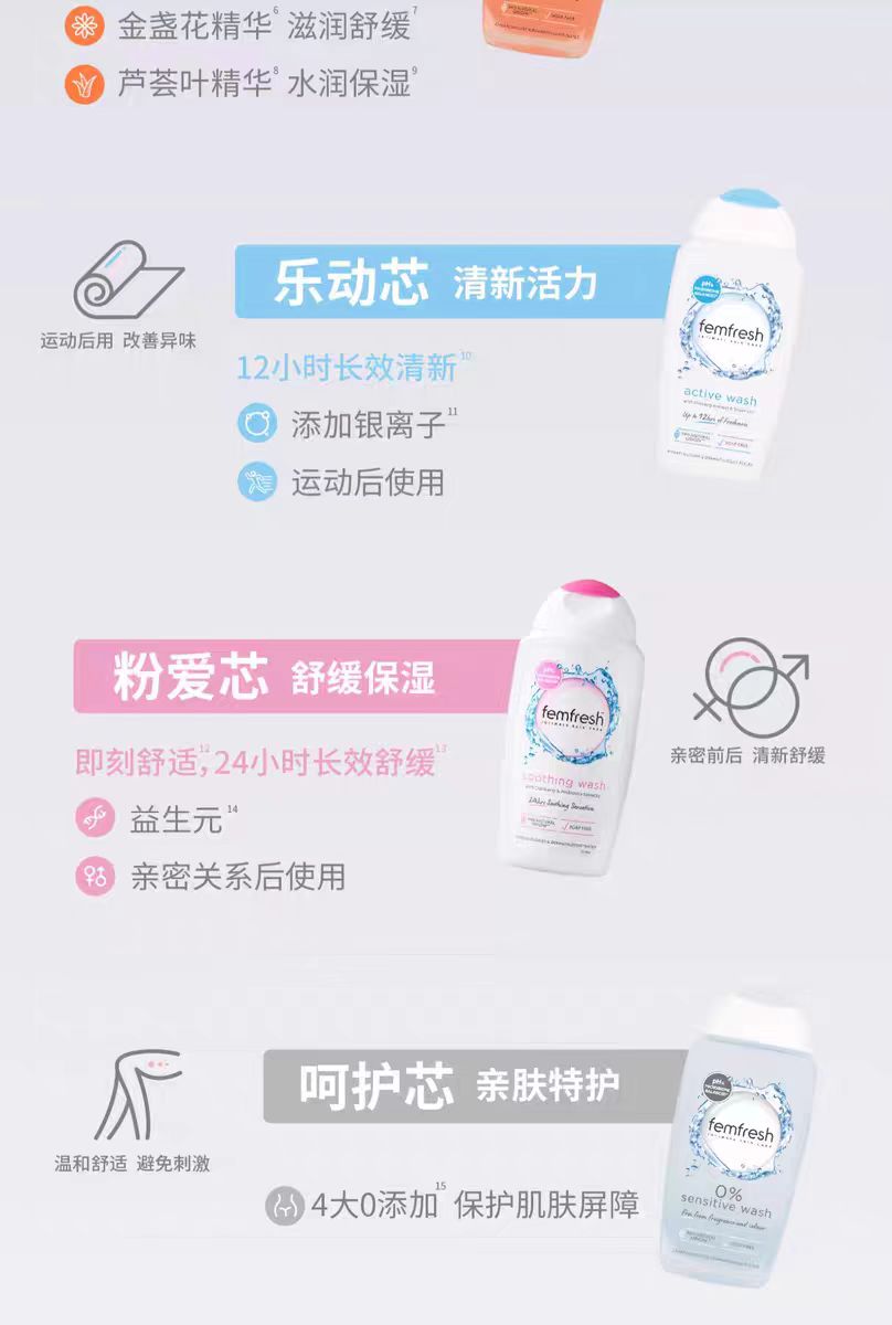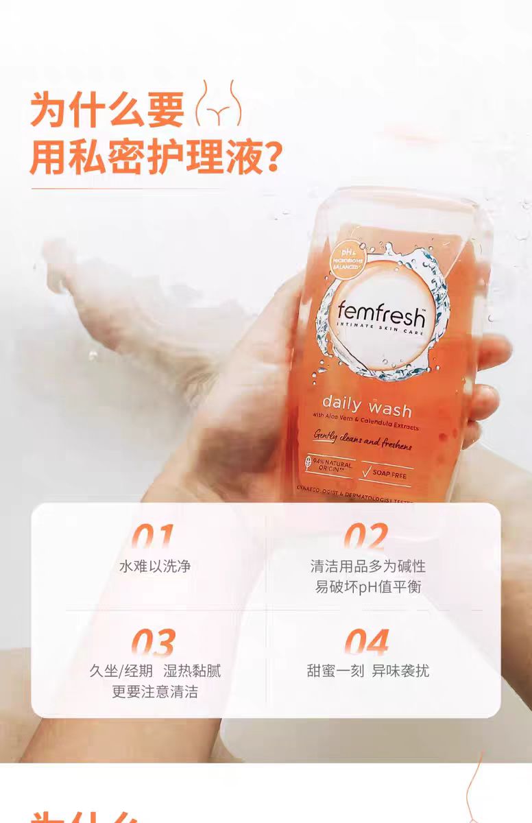 4楼Eubelle欧蓓 英国Femfresh芳芯洗护女性私处洗护液250ml温和 吊牌价:49元 活动价:38.9元