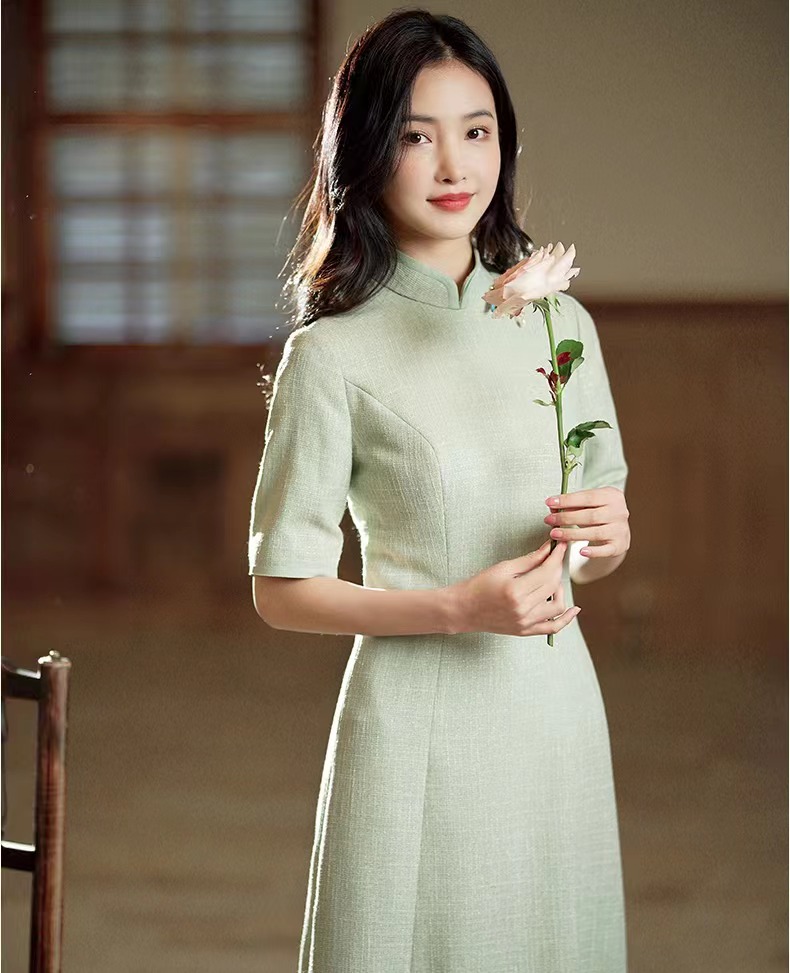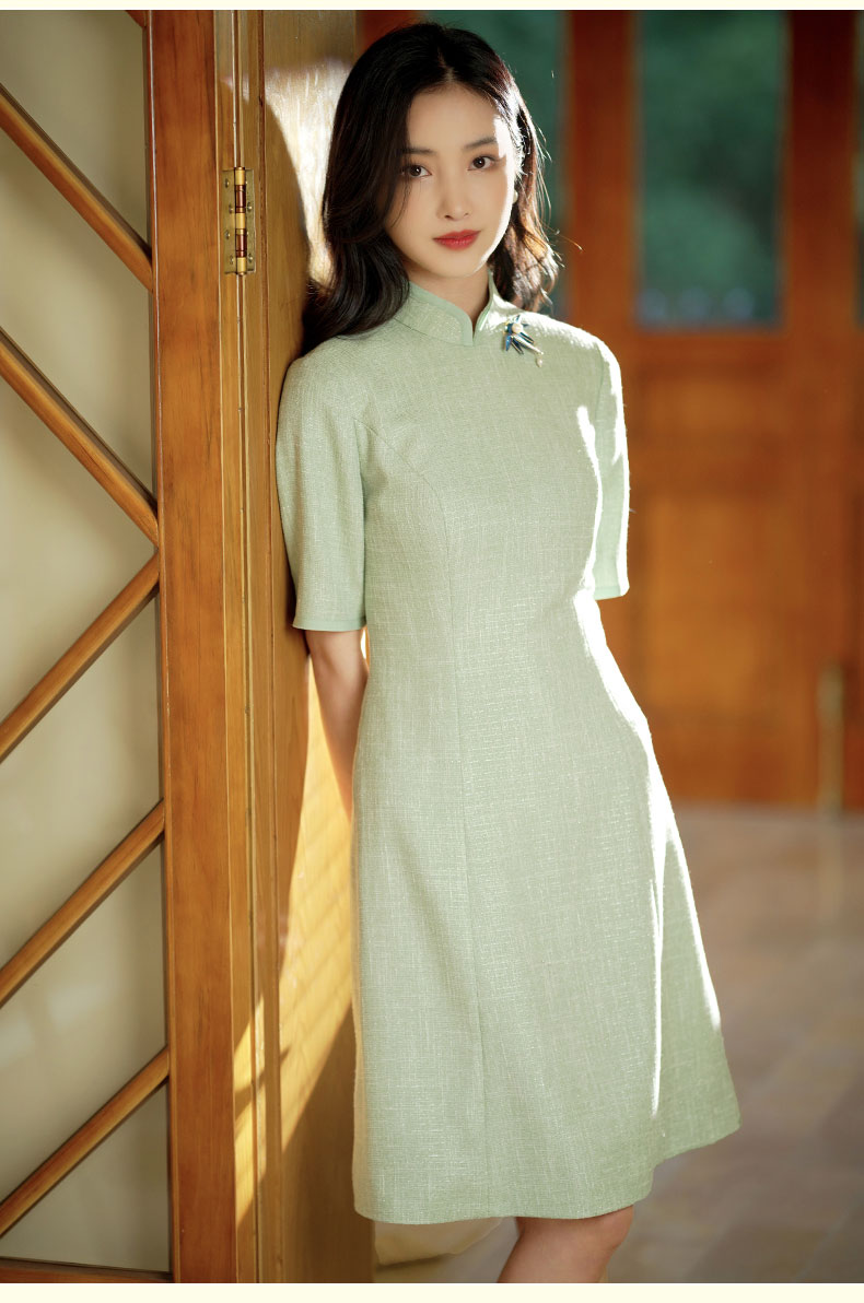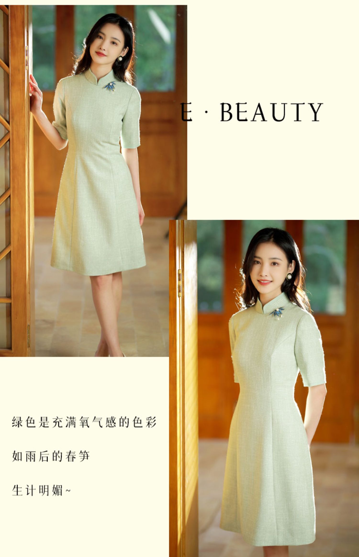 柔软亲肤,97cm的黄金裙长,上身超级显白,显气质,夏季的衣橱绝不能少一件绿色的单品!