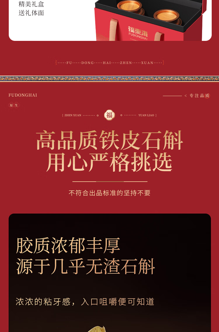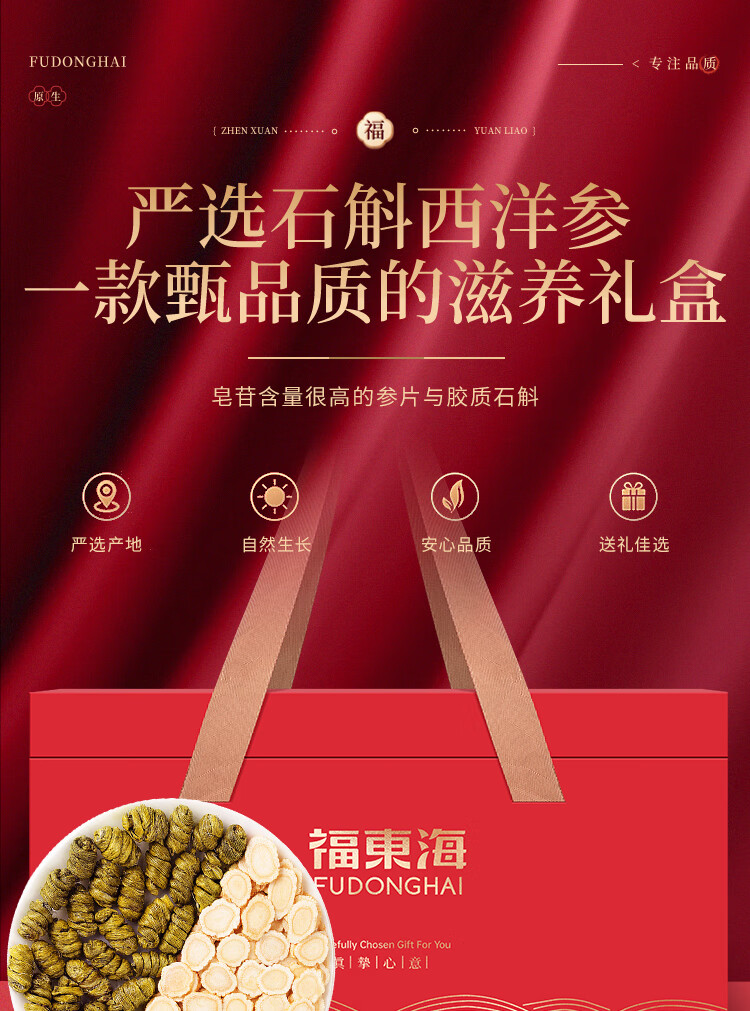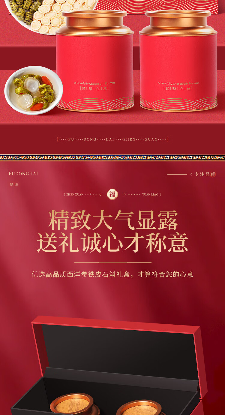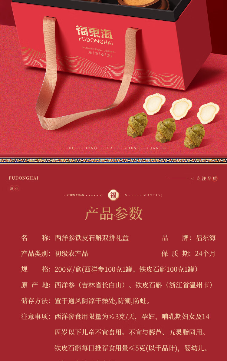 福东海 西洋参片铁皮石斛 红双罐双拼礼盒200克 特优原料滋补送长辈父母