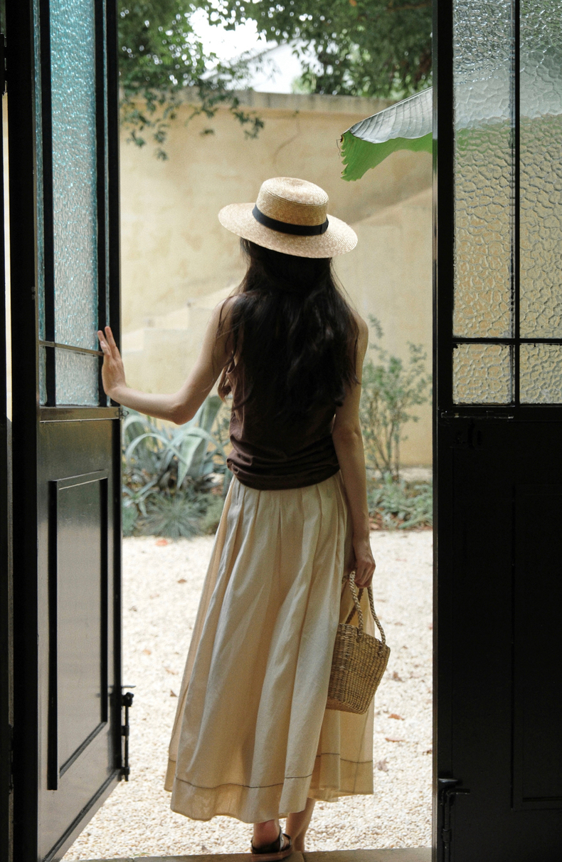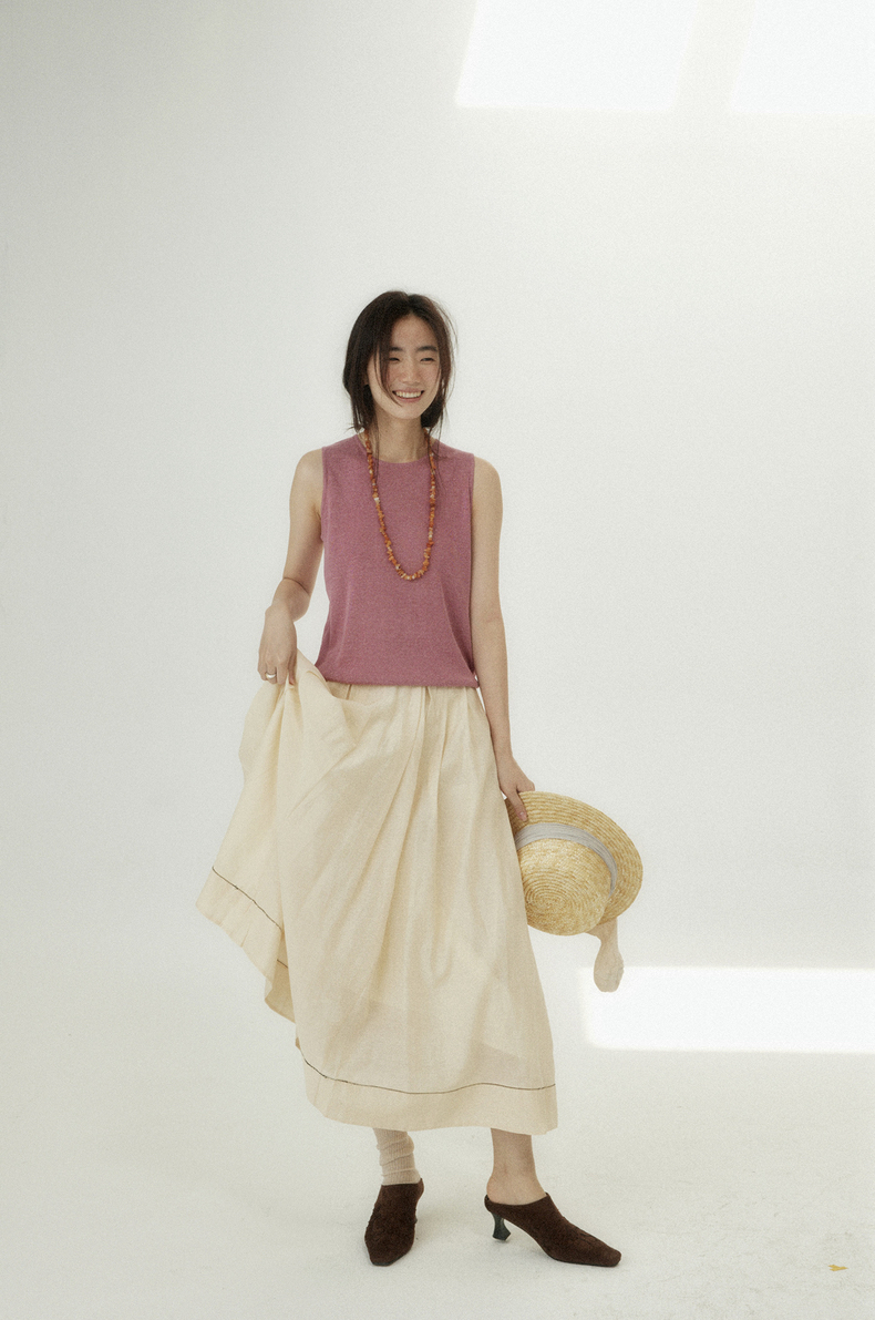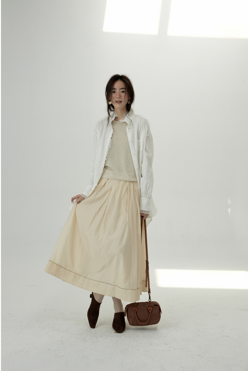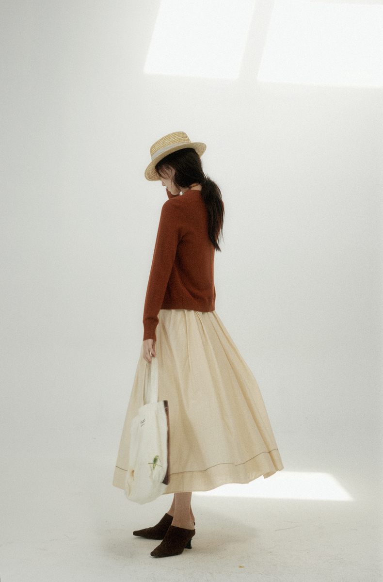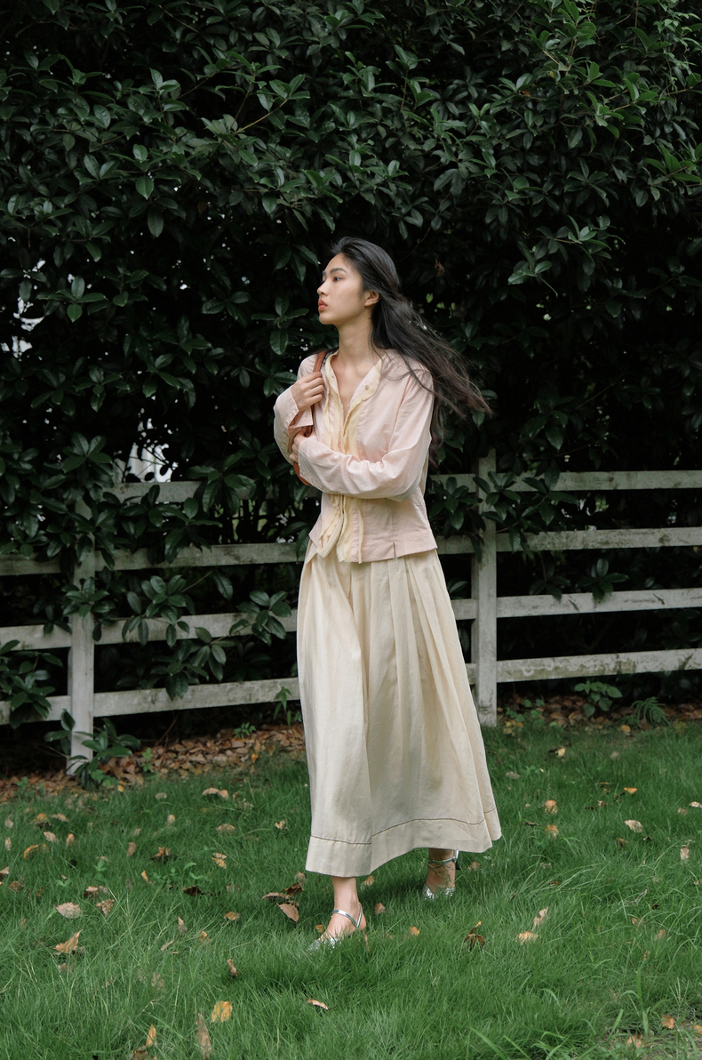 [特价] 复古名伶 冷染天丝织带腰萨斯装饰绣花线A字褶裥半裙