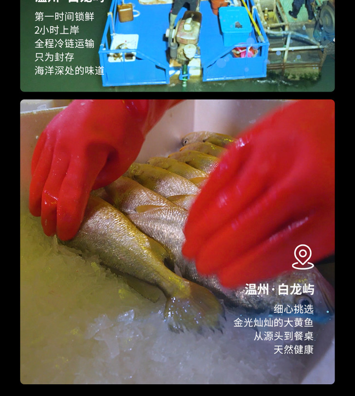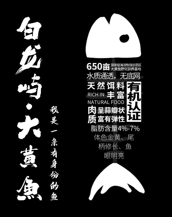 1、产品特点:白龙屿大黄鱼具有体色金黄、尾柄修长,肉质鲜嫩呈蒜瓣状且肌肉坚实而富有弹性。氨基酸、蛋白质、脂肪含量等各项指标通过农业农村部质量检测中心(部级)检验检测,符合国家优质农产品质量标准,完全可与野生大黄鱼相媲美。