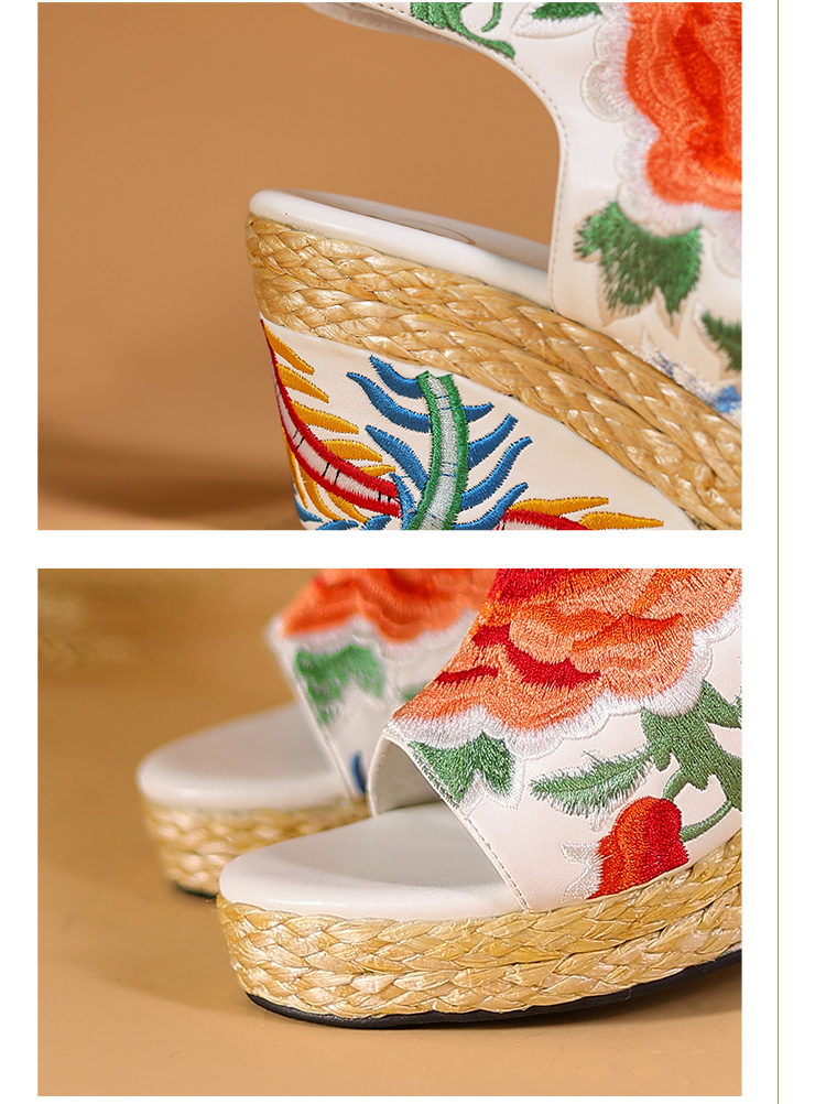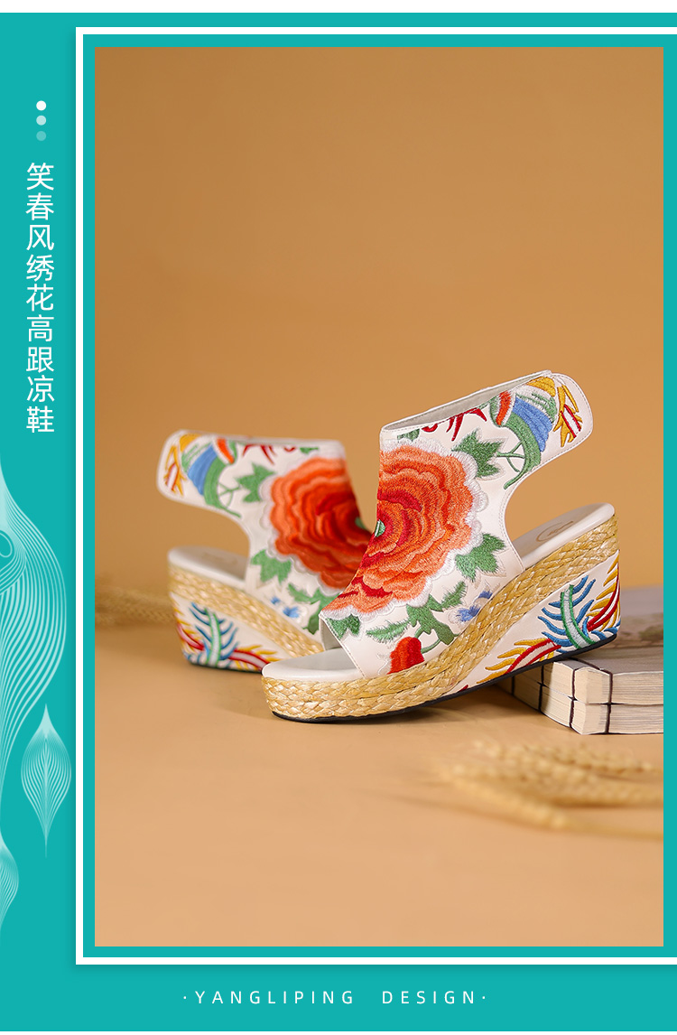 笑春风绣花高跟凉鞋 | 前跟高3cm 后跟高9cm |现货加急发