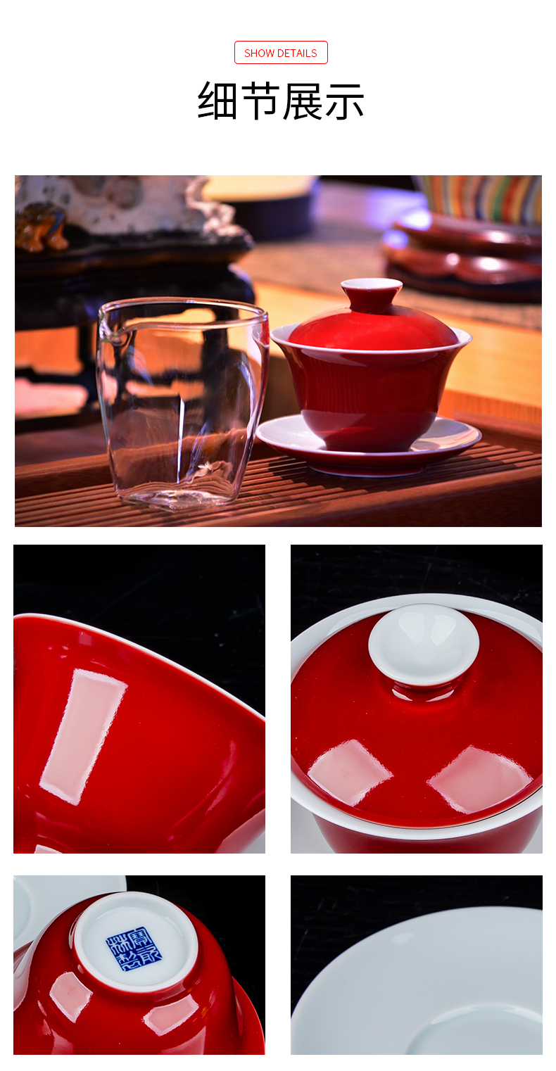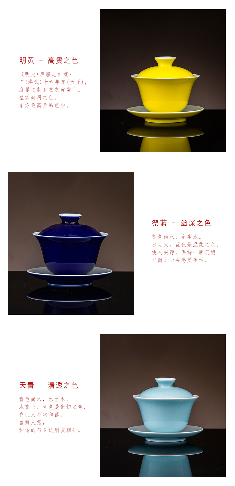 【宝瓷林】天青、豆青、明黄、紫金、祭蓝、玫瑰红颜色釉盖碗