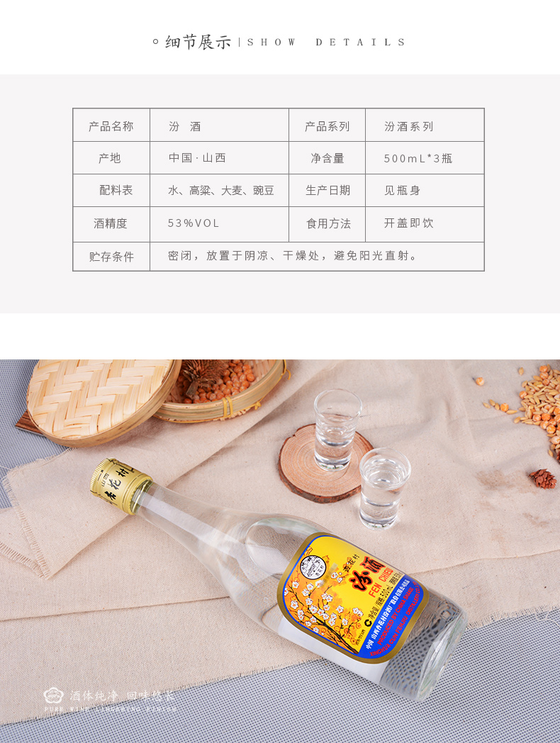 53°(250ml)出口汾酒(2019) 250ml*1 山西杏花村汾酒