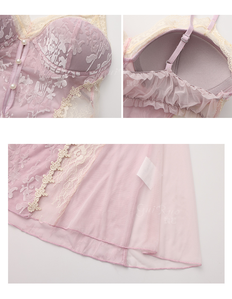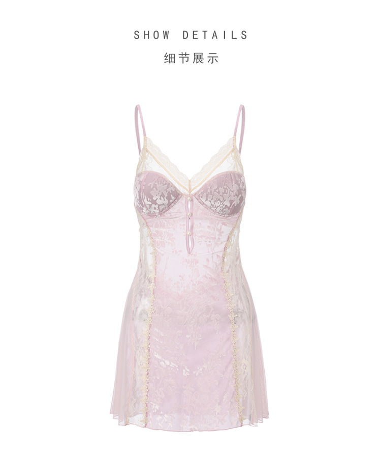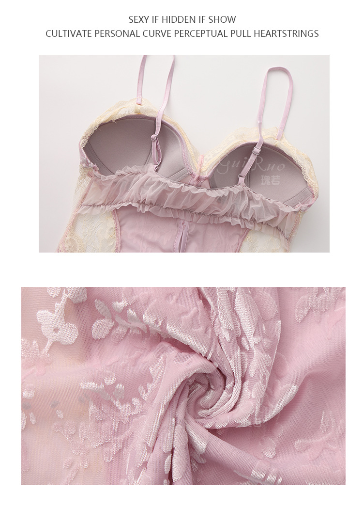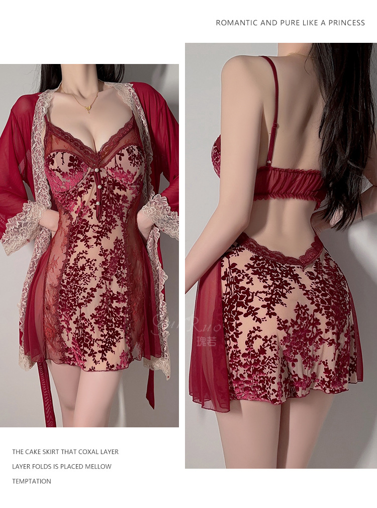 DZ瑰若性感丝绒睡衣纯欲透视网纱激情深V加胸垫睡裙外袍套装C5928