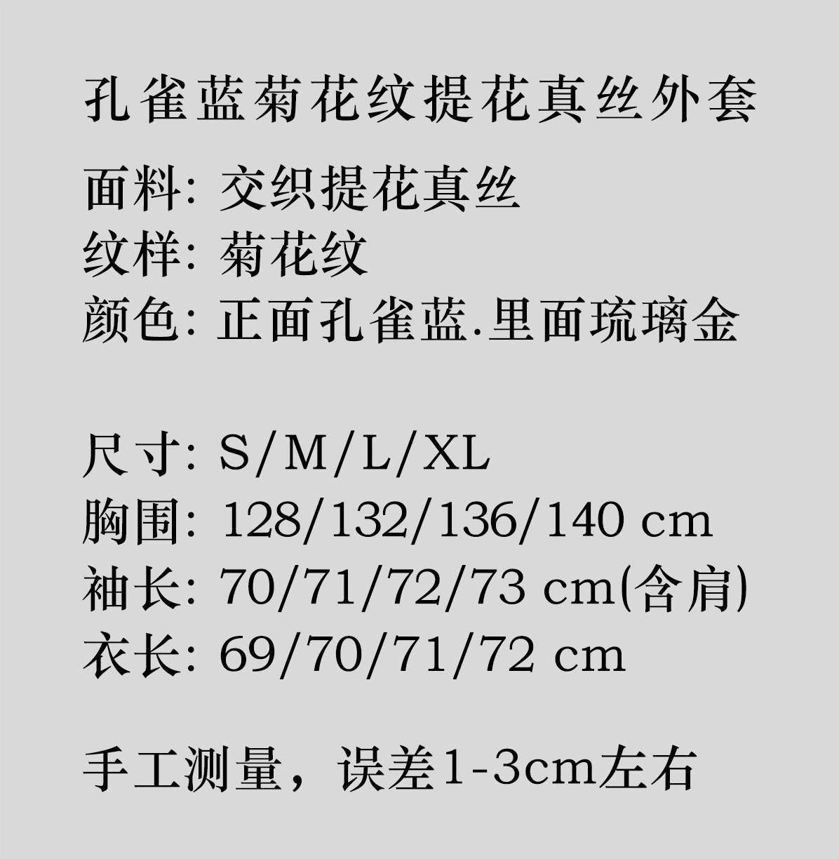 瑕疵| 盛唐牡丹 |孔雀蓝双面穿菊花纹提花真丝外套[特价品]](特殊商品不退不换)