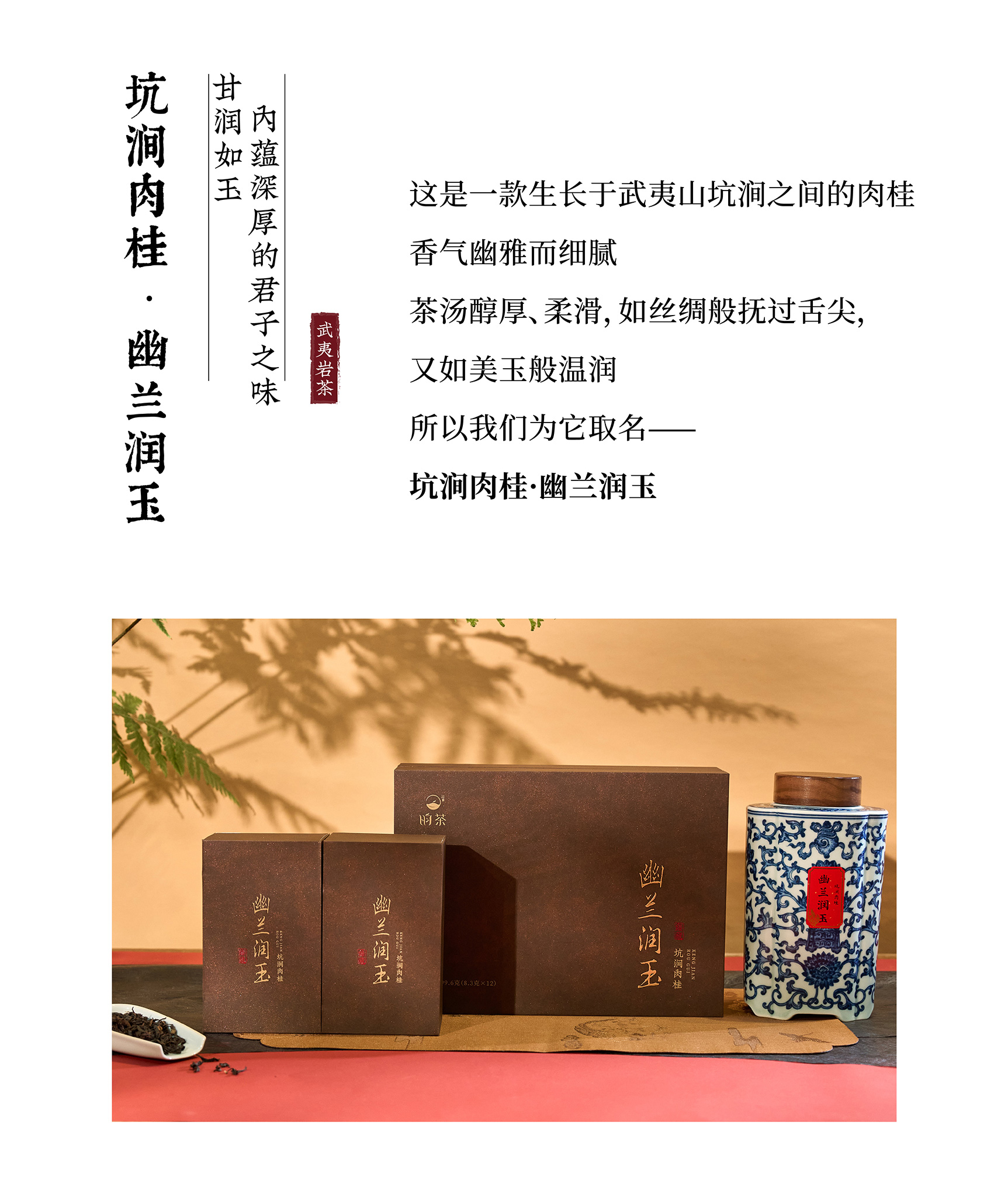 【昀茶·岩茶系列】坑涧肉桂·幽兰润玉 香气馥郁持久 产自武夷山核心产区 独特的岩骨花香 耐泡性强 8.3g*12泡(礼盒装)/100g(收藏罐装)