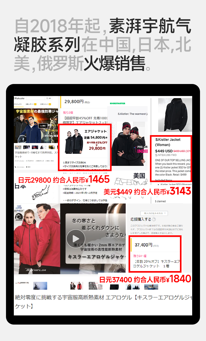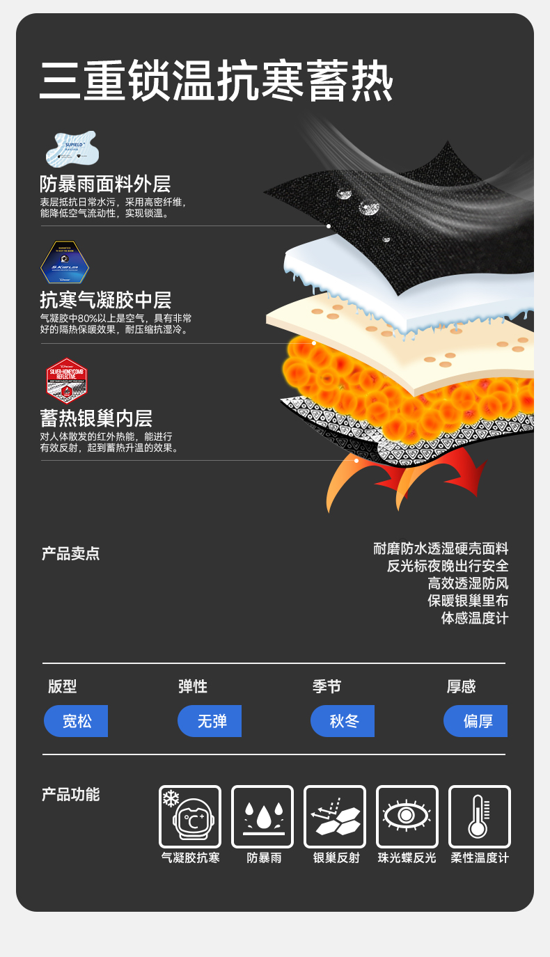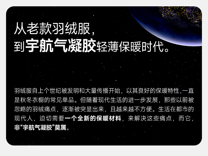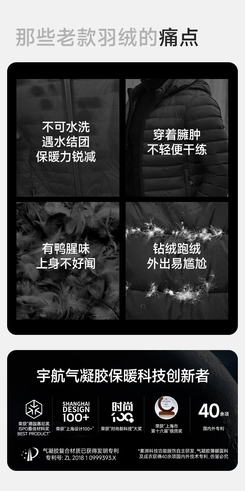 素湃宇航气凝胶都市远足者防寒外套A5301