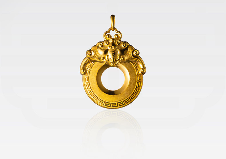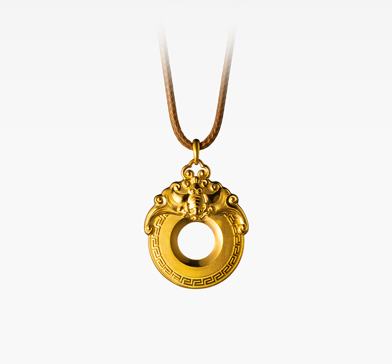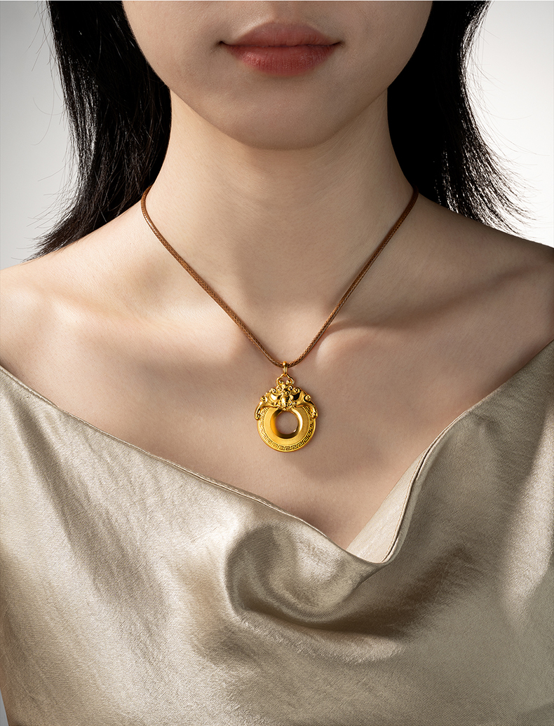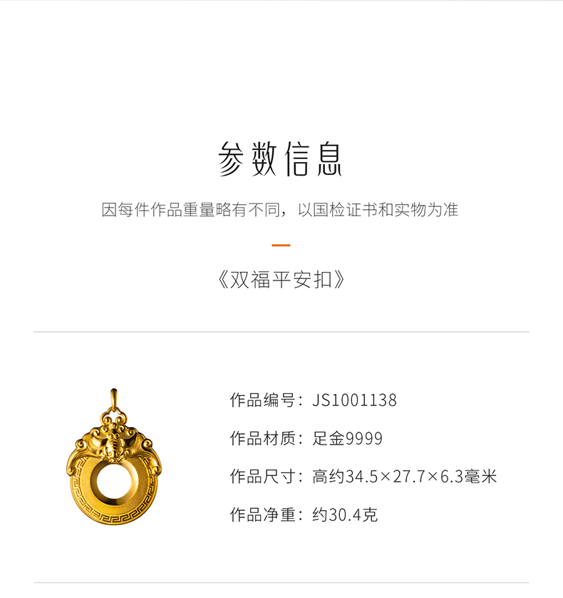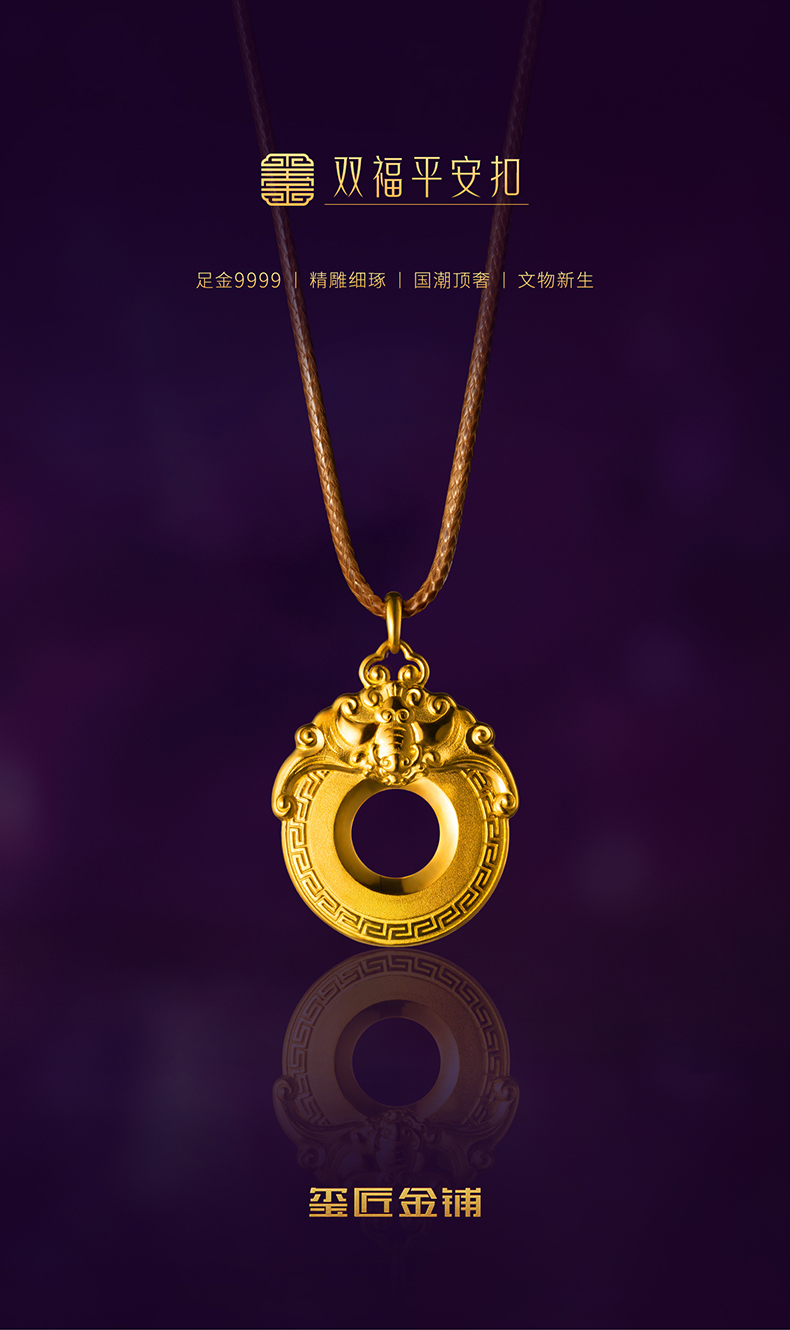 玺匠金铺《双福平安扣》足金9999 黄金吊坠项链生日礼物