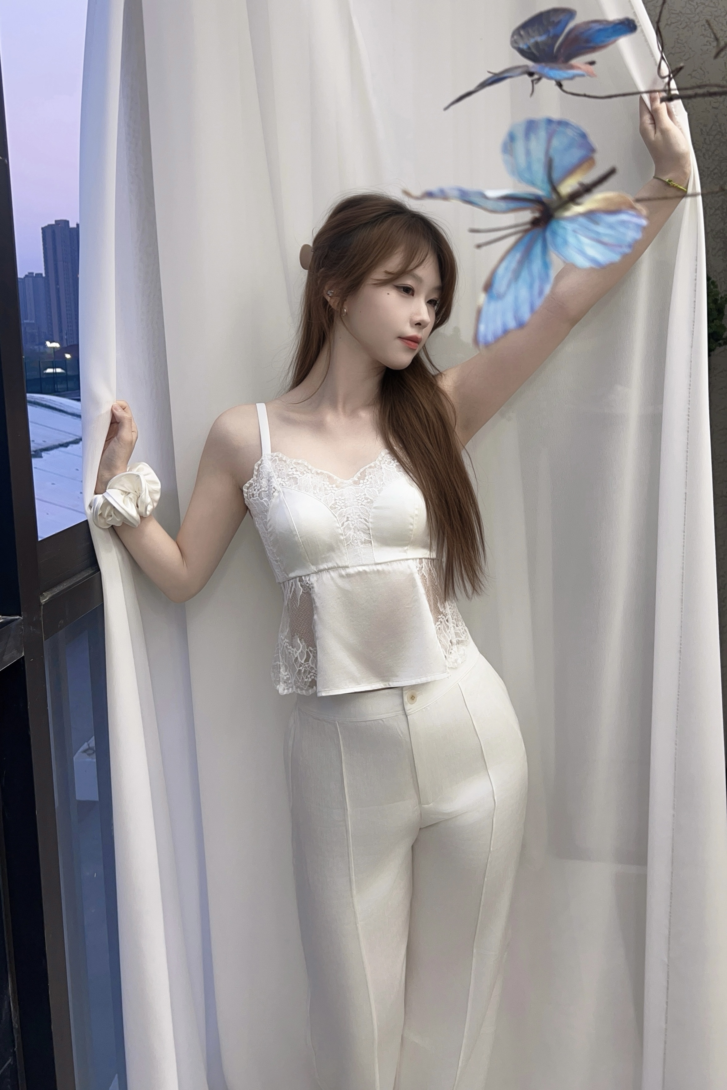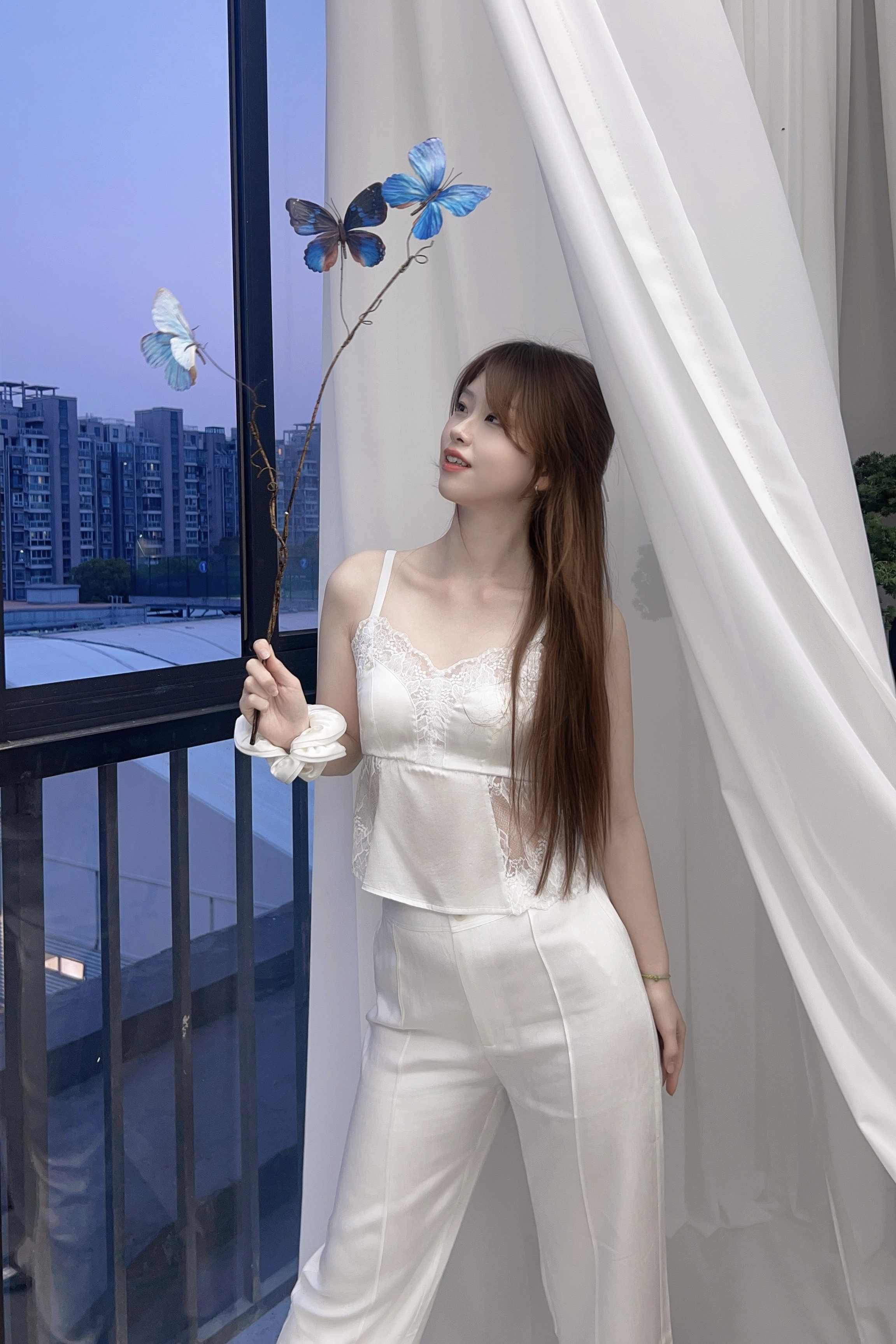细腻的蕾丝花纹仿佛将振翅的蝴蝶直接“印”在了身上,真丝的光泽感与蕾丝的朦胧交织,若隐若现的露肤度既性感又不失高级感。栩栩如生的蝴蝶,充满了浪漫与优雅的气息,美到窒息~~!
