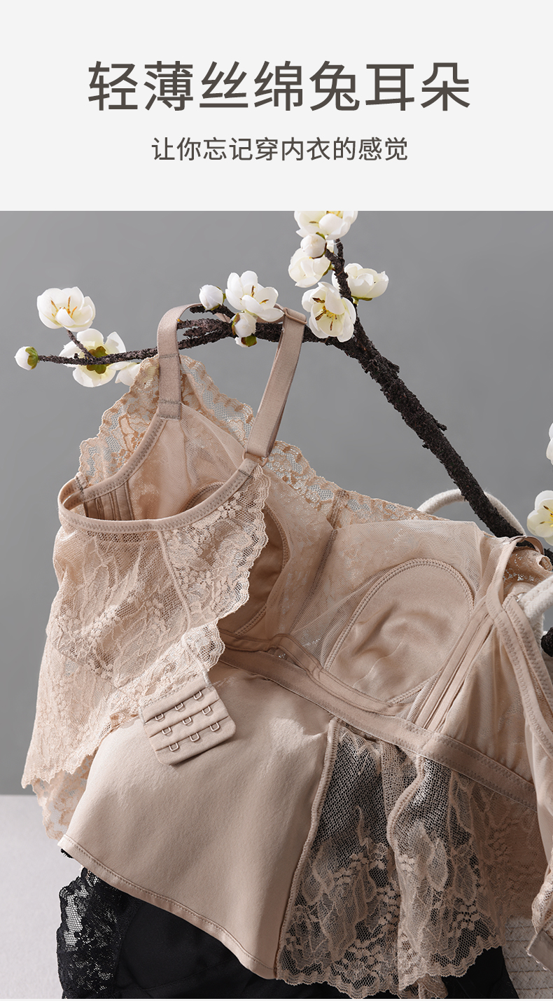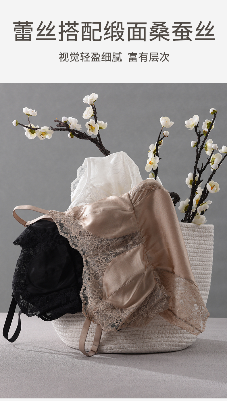 逸红颜周末小集市#真丝蕾丝美背【蝴蝶梦】19姆米真丝弹力缎,拼接进口蕾丝,自带兔耳真丝内杯