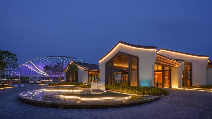 度假村整体设计以江南秀水,国风立意,新中式的室内装潢融合当地“山”与“水”的元素,以暖色作为基调,勾勒出精致而活力的建筑线条,一共222间客房,包含17间湖景套房和7间家庭套房,每一间客房拥有精致典雅的装潢,缓缓步入阳台欣赏湖山风景,给予宾客轻松自在的下榻体验。