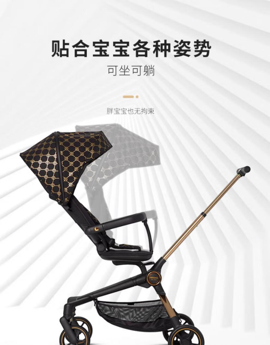 德拉玛(DELAMA)溜娃神器双向高景观遛娃神器可坐可躺折叠婴儿推车Q1 Q1-plus玫瑰金