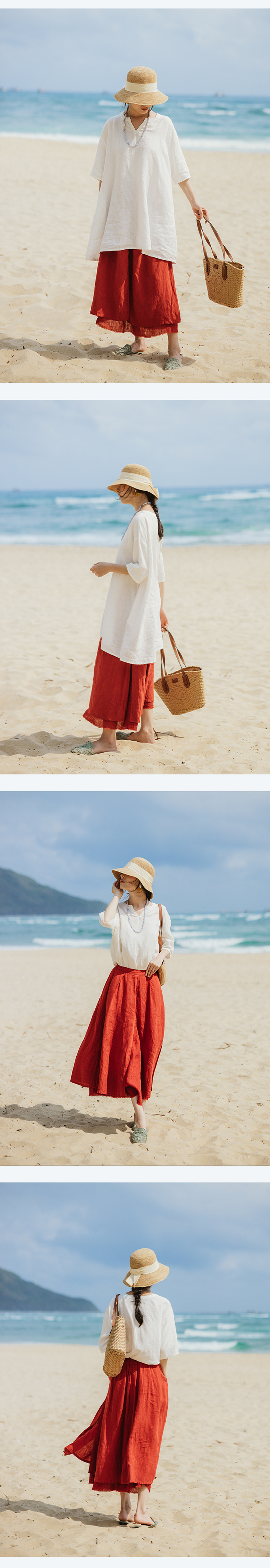以天然亚麻为载体,融合热烈色彩与自在剪裁为身在城市、心怀远方的女性提供兼具美学与舒适的旅行着装