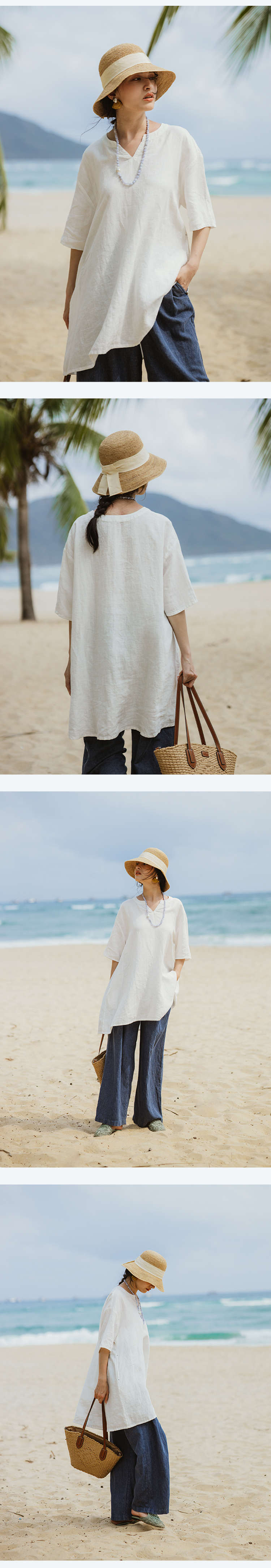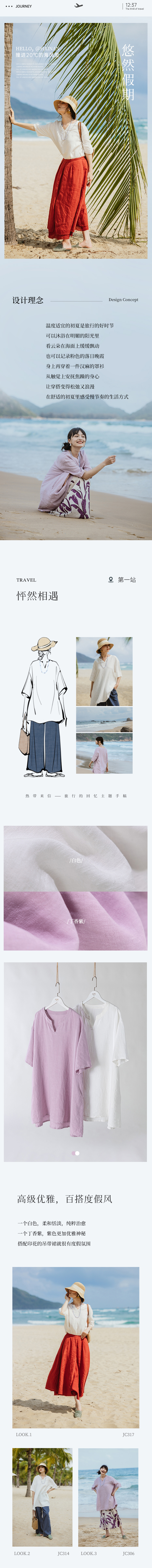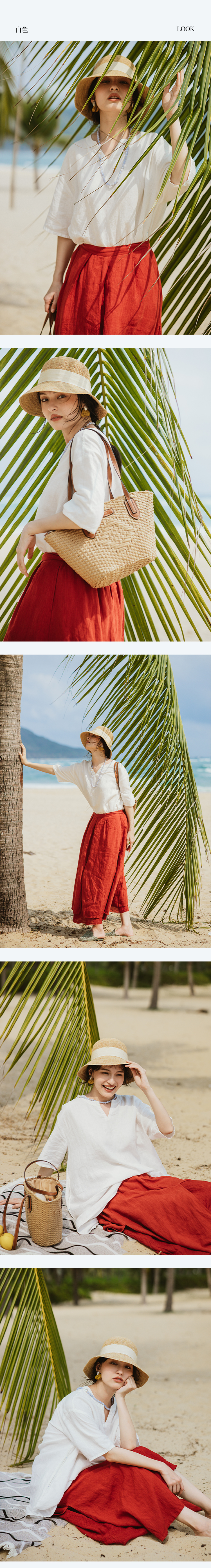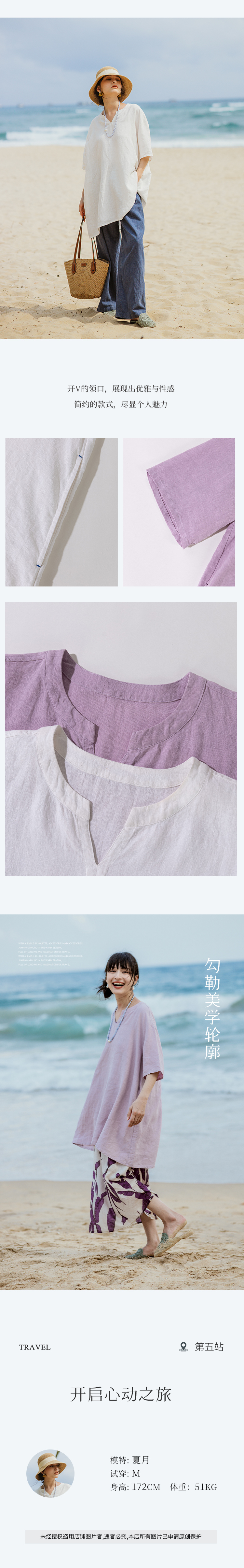 绽放旅行女装309/度假防晒罩衫短袖宽松高端汉麻衬衫上衣旅游穿搭