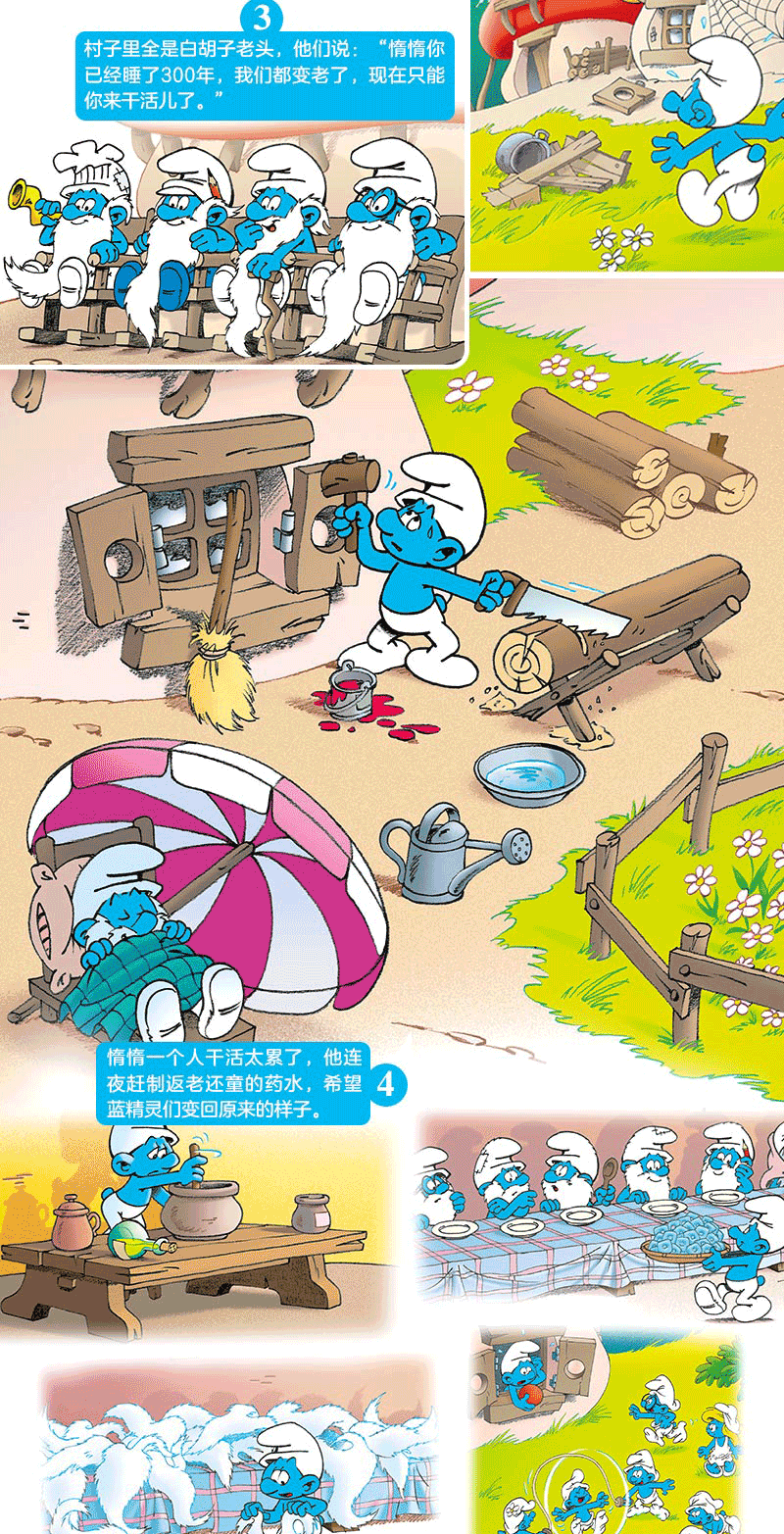 一群蓝色的、三个苹果高的小精灵在大森林里快乐地生活。巫师格格巫是他们*的敌人,他总想抓住抓住这些蓝色的小精灵,用他们来熬一锅美味的汤,于是他们之间就有了无数有趣好玩的故事。
