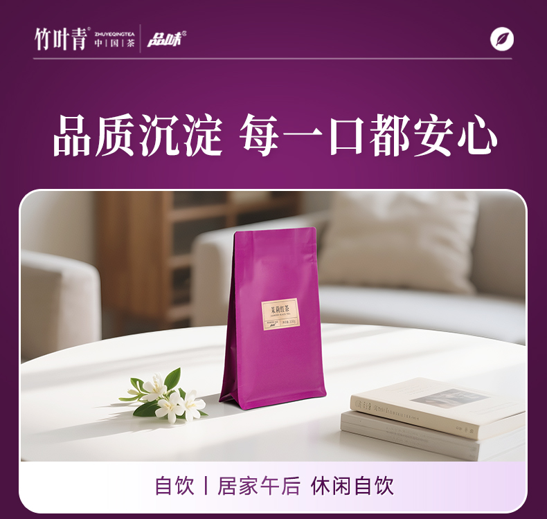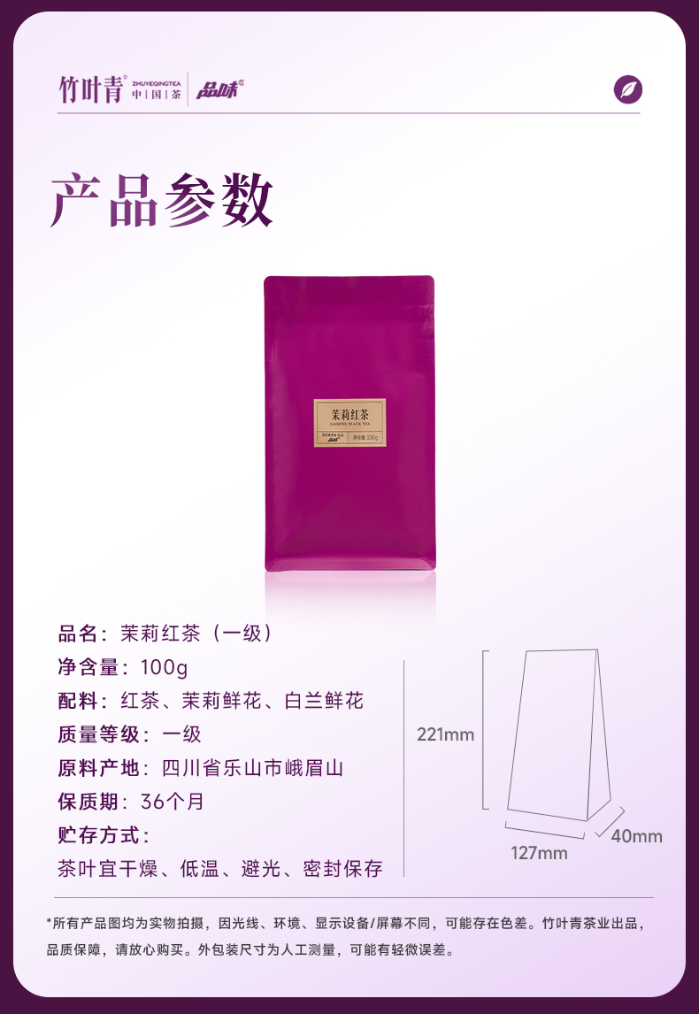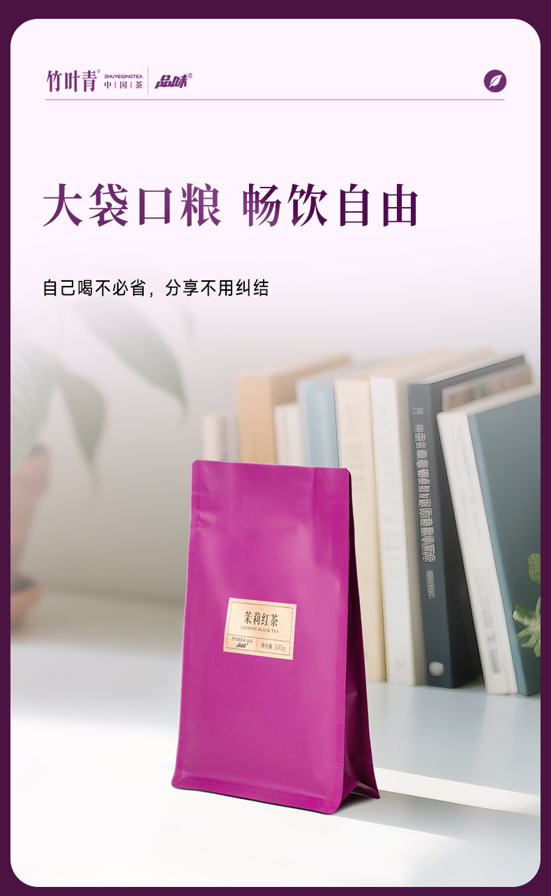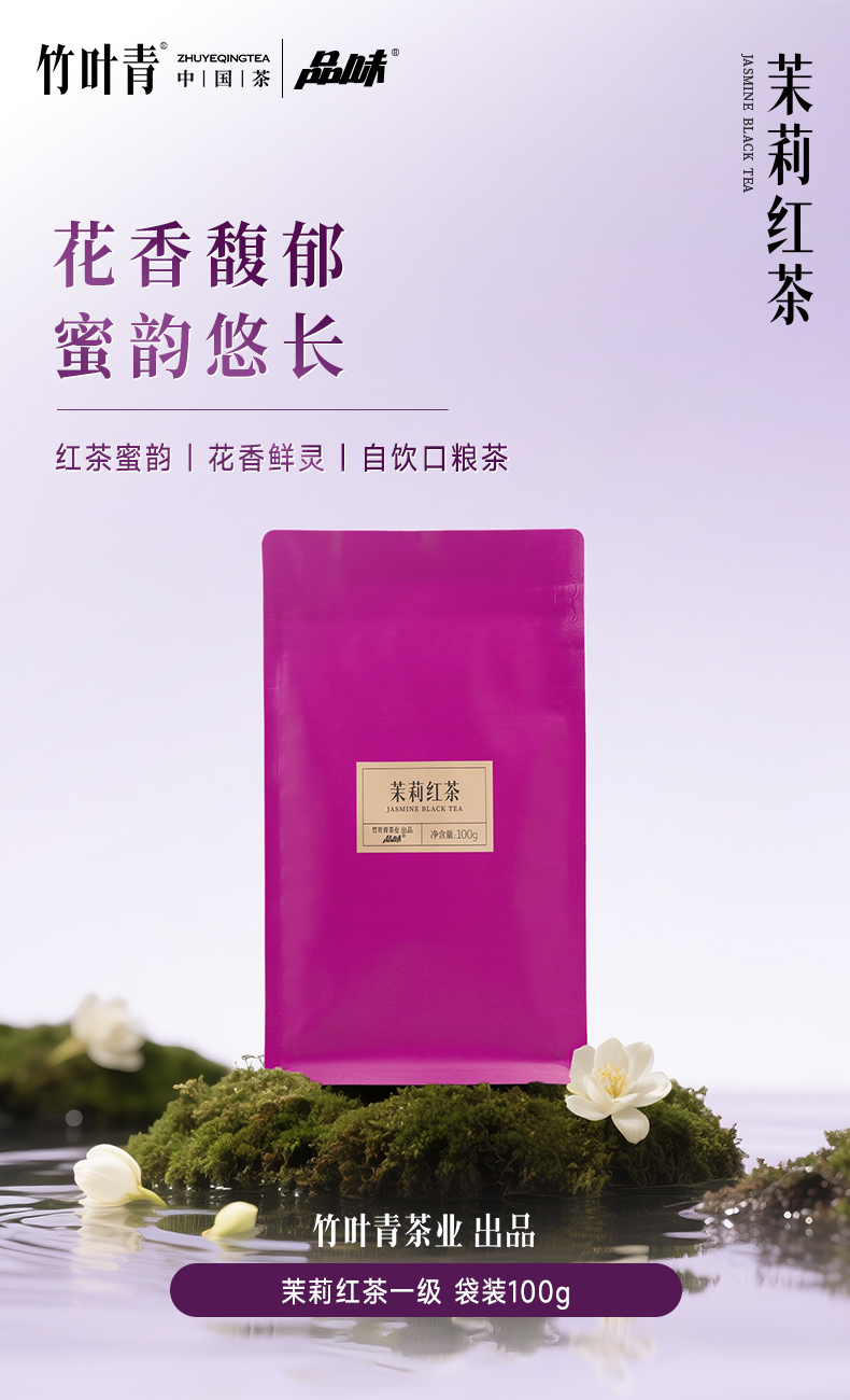 品味牌茉莉红茶一级茶叶袋装100g自饮装竹叶青茶业出品