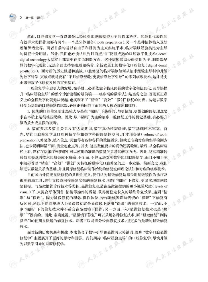 2. 全书共5篇、16章,内容由浅入深、由理论到实践,对数字口腔显微修复做了系统阐述,结合数字引导技术与显微修复技术,详细介绍了一种全新的数字口腔显微精准临床修复技术。