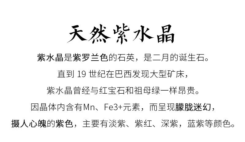紫水晶具有使情绪稳定、心态平和、镇静、安神、温肺、暖宫的功效,改善睡眠质量,此外还可以兴奋中枢神经,促进卵巢分泌功能。