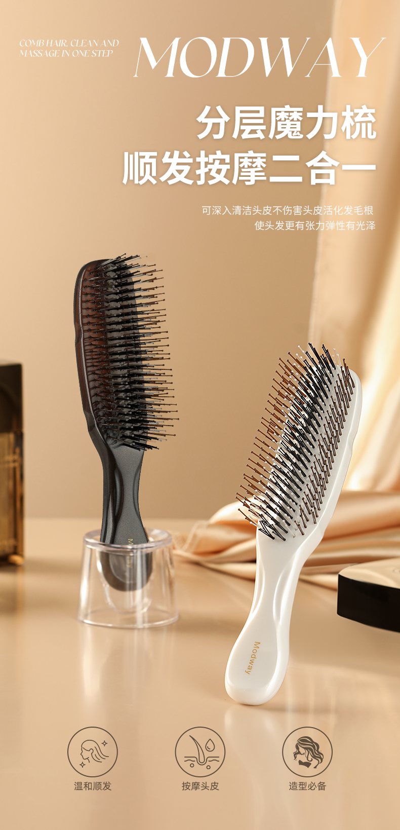 【72小时内发货】有专利的头皮养护梳!Modway 养护按摩梳 干湿两用按摩梳 蓬松 洁净 便携 防静电 梳子 常规款/迷你款