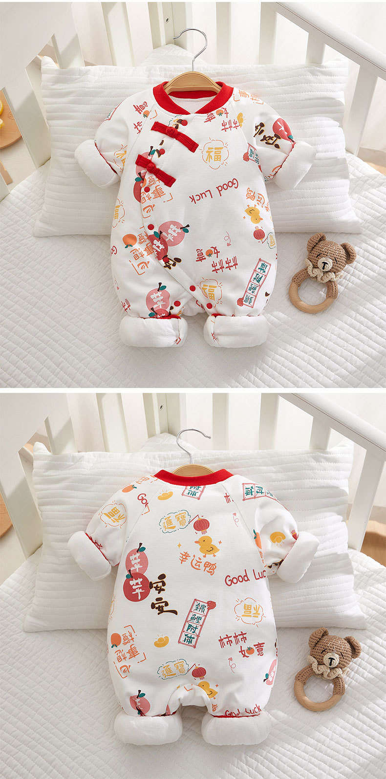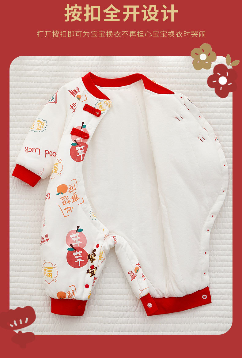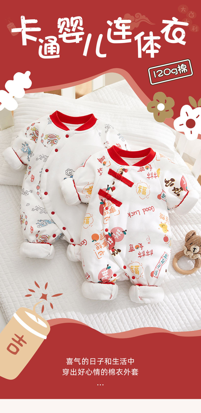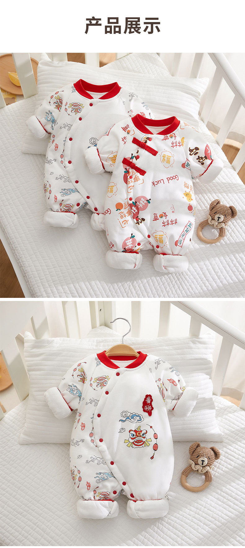 【国风喜庆婴儿连体衣】冬款保暖纯棉新年红色爬爬服外穿宝宝新生儿衣服