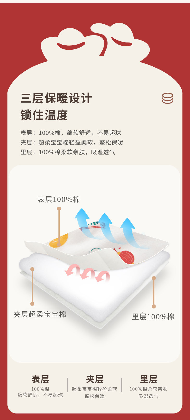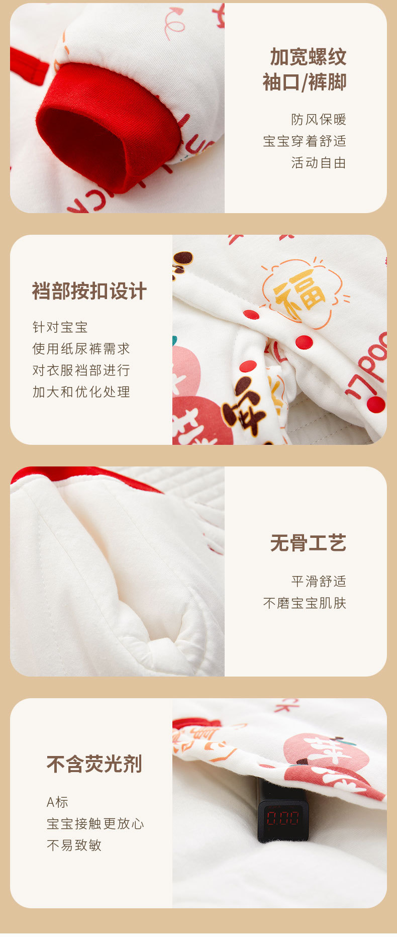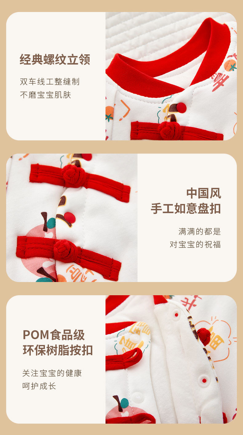 【国风喜庆婴儿连体衣】冬款保暖纯棉新年红色爬爬服外穿宝宝新生儿衣服