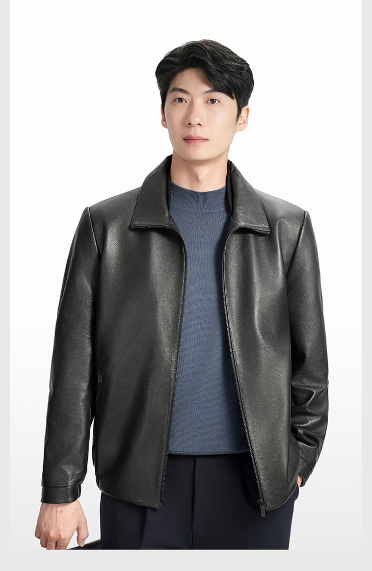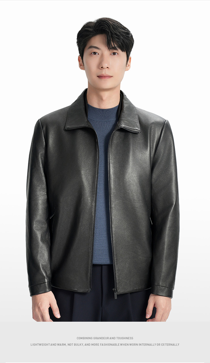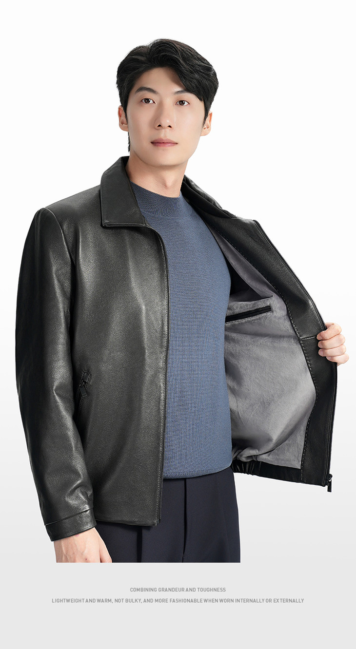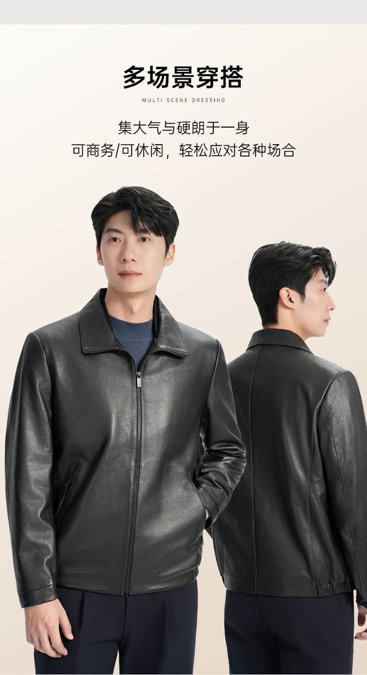 【头层绵羊皮商务翻领夹克】翻领通勤外套防风保暖皮衣夹克