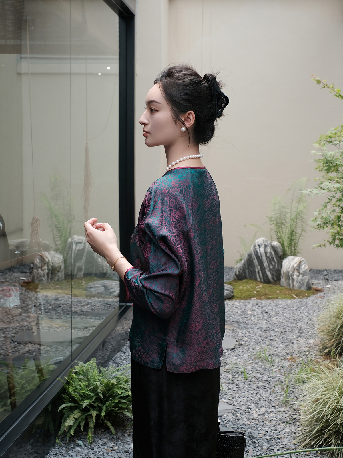 盛唐婧 |提花真丝缎开衫上衣