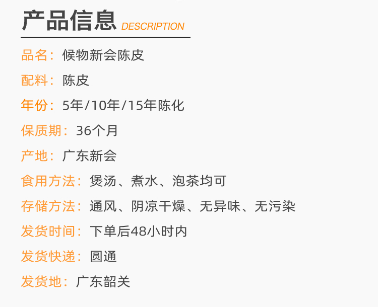 候物新会陈皮 东甲圈枝干仓大红皮 5年10年15年陈化