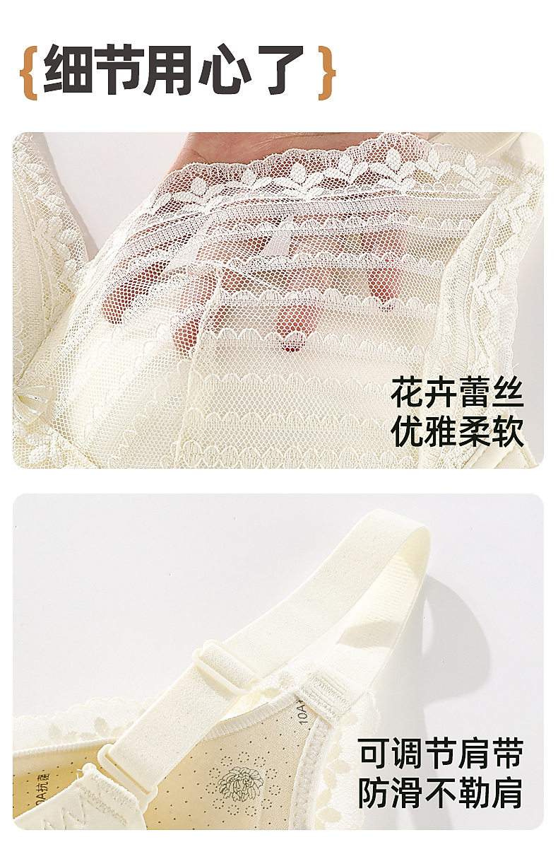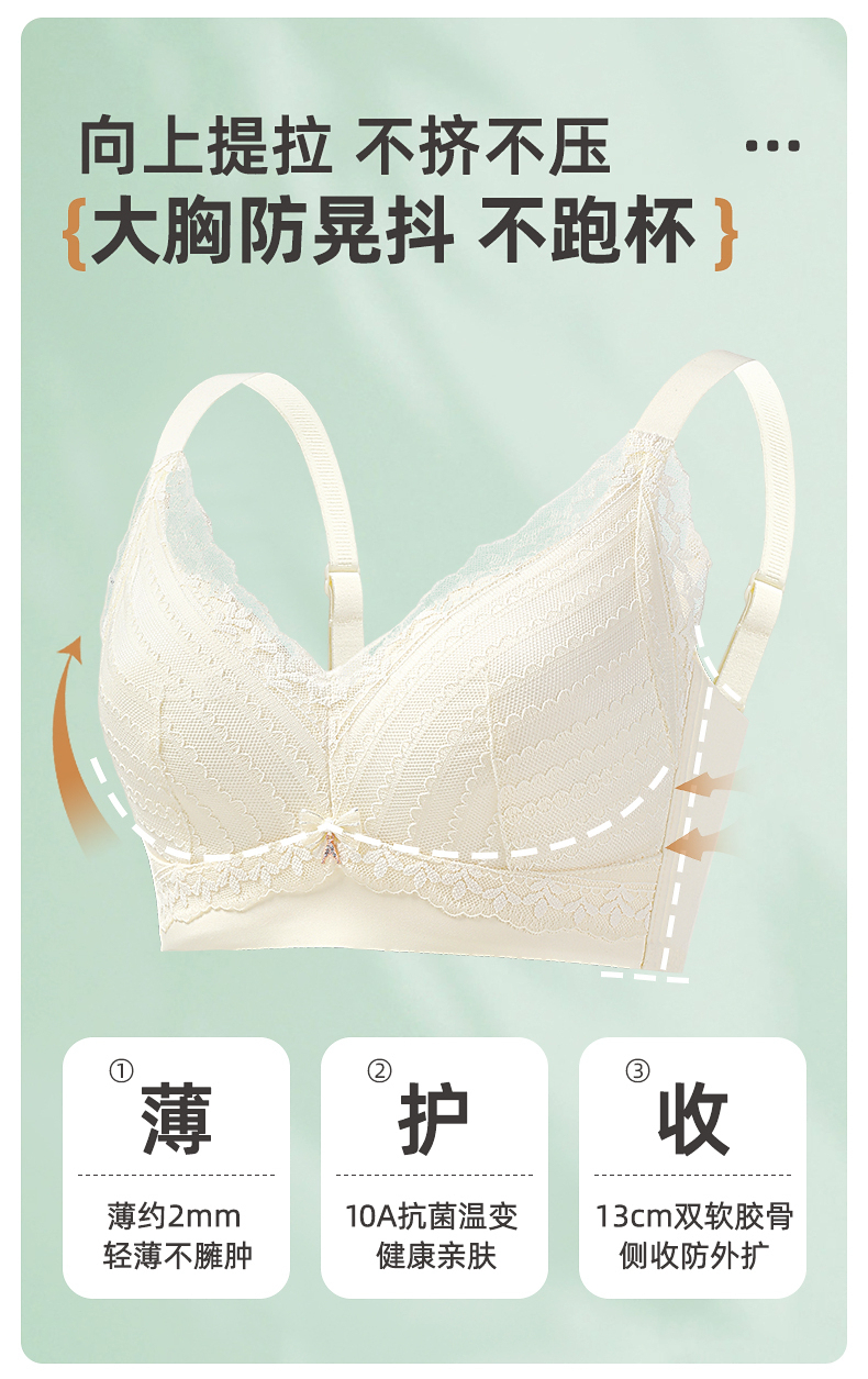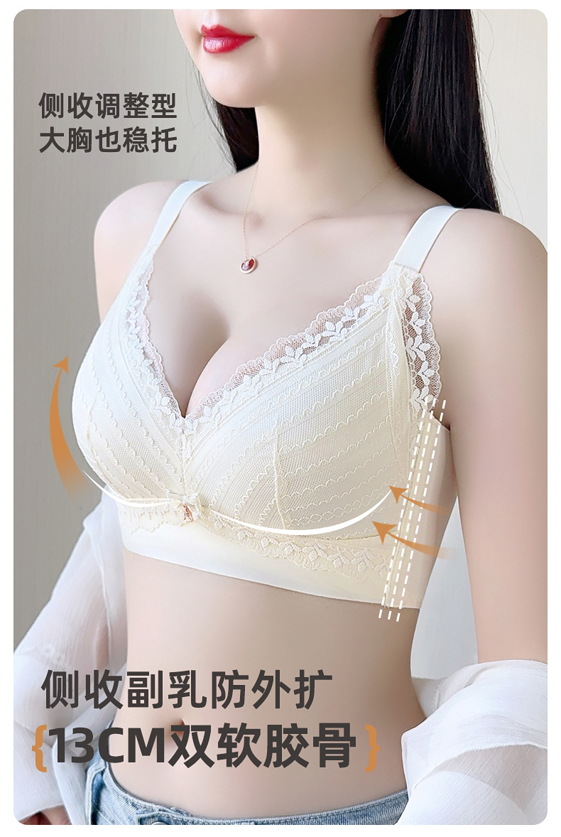 雅黛俪大胸显小显瘦女士文胸轻薄透气性感蕾丝全罩杯内衣胸罩