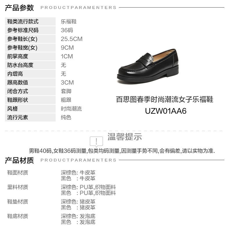 【百思图】BF楼百思图2026春季新款牛皮乐福鞋小皮鞋一脚蹬女单鞋UZW01AA6吊牌价959.现价399