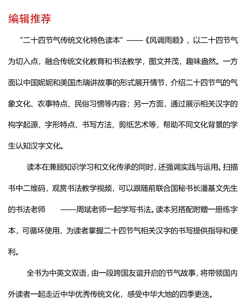 风调雨顺 夏 附赠练习册 二十四节气传统文化特色读本 中英双语全彩印刷