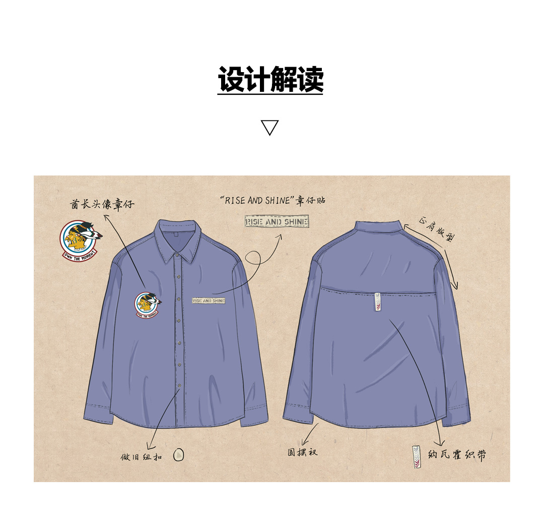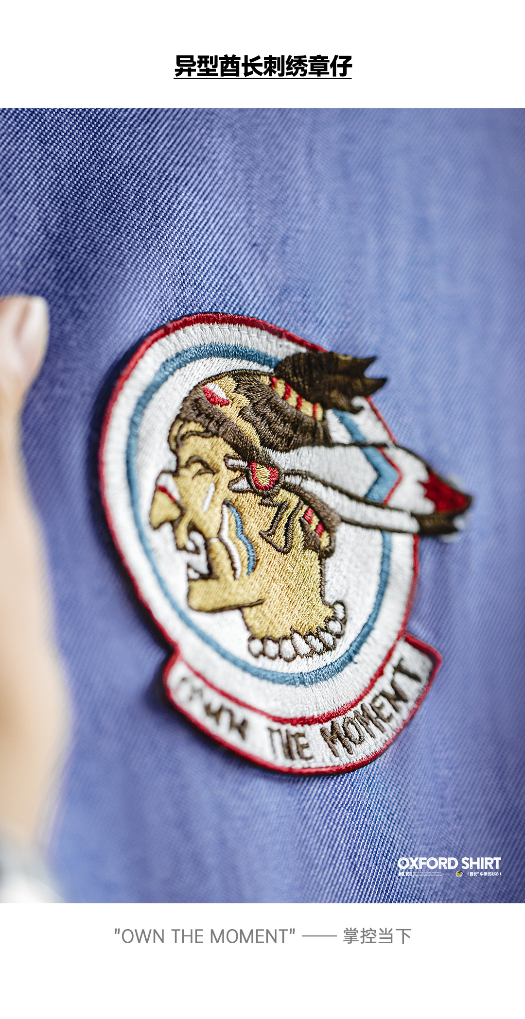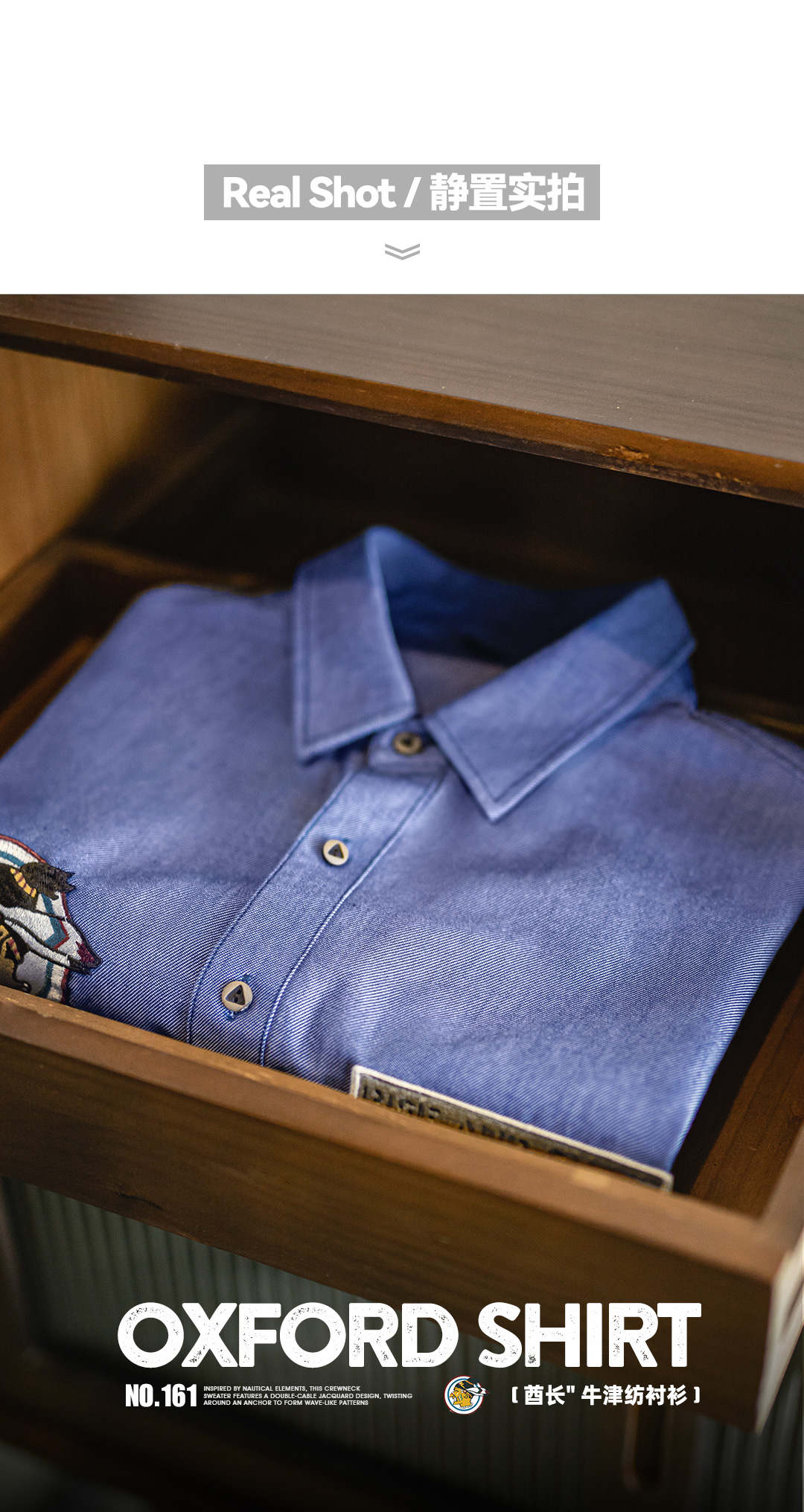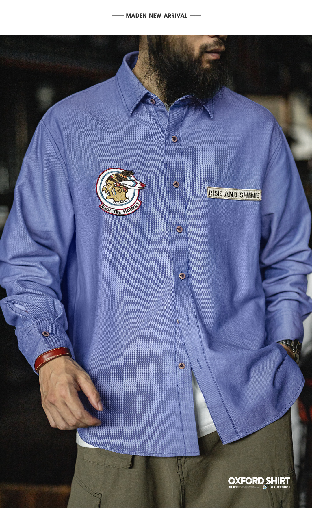 马登工装美式休闲牛津纺长袖衬衫蓝色衬衣外套纯棉牛津布薄款男秋