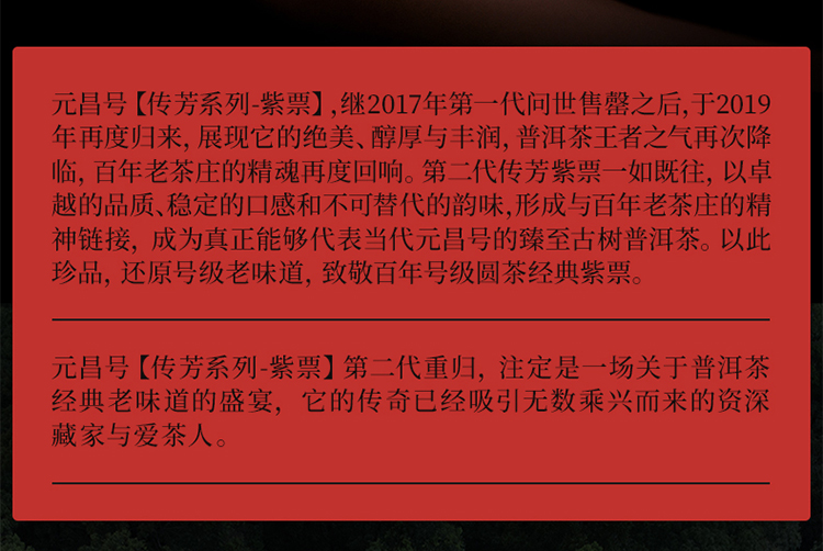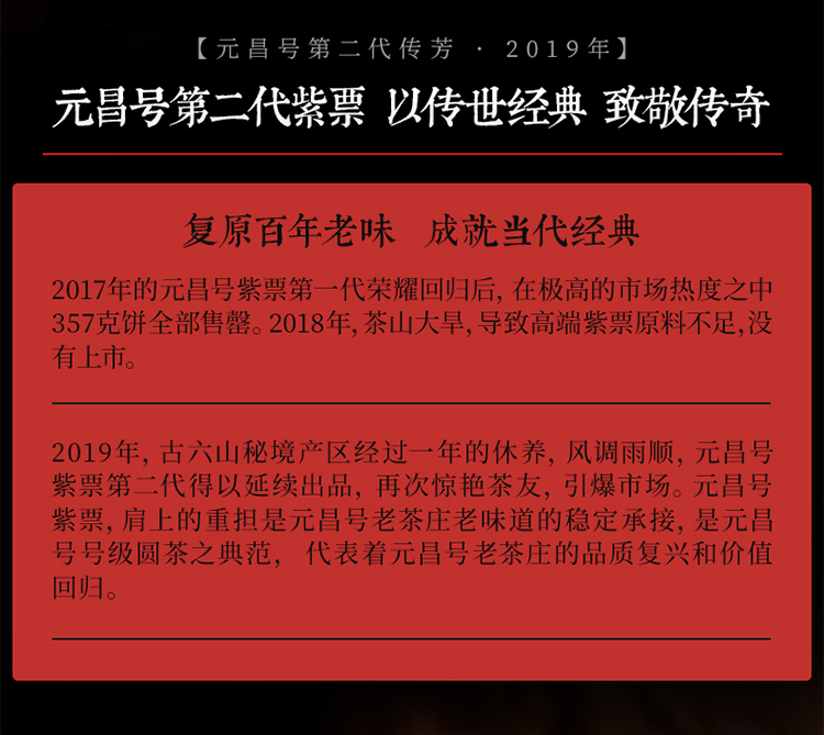 【元昌号】传芳系列2019年第二代紫票357g生饼