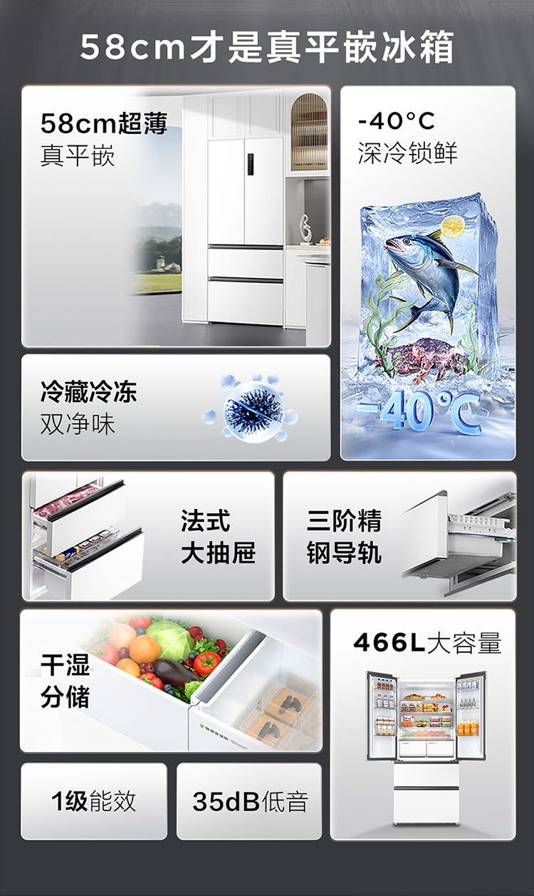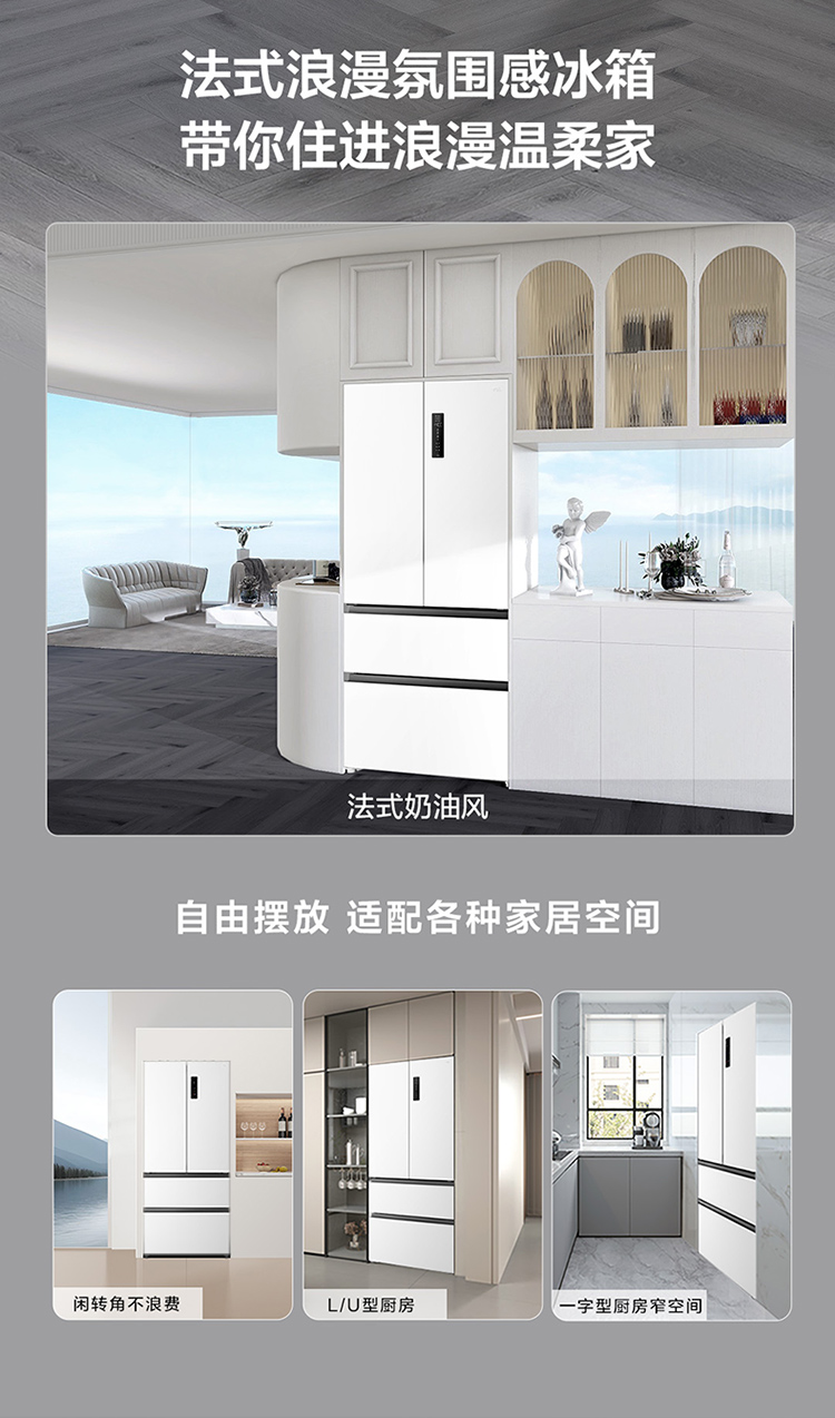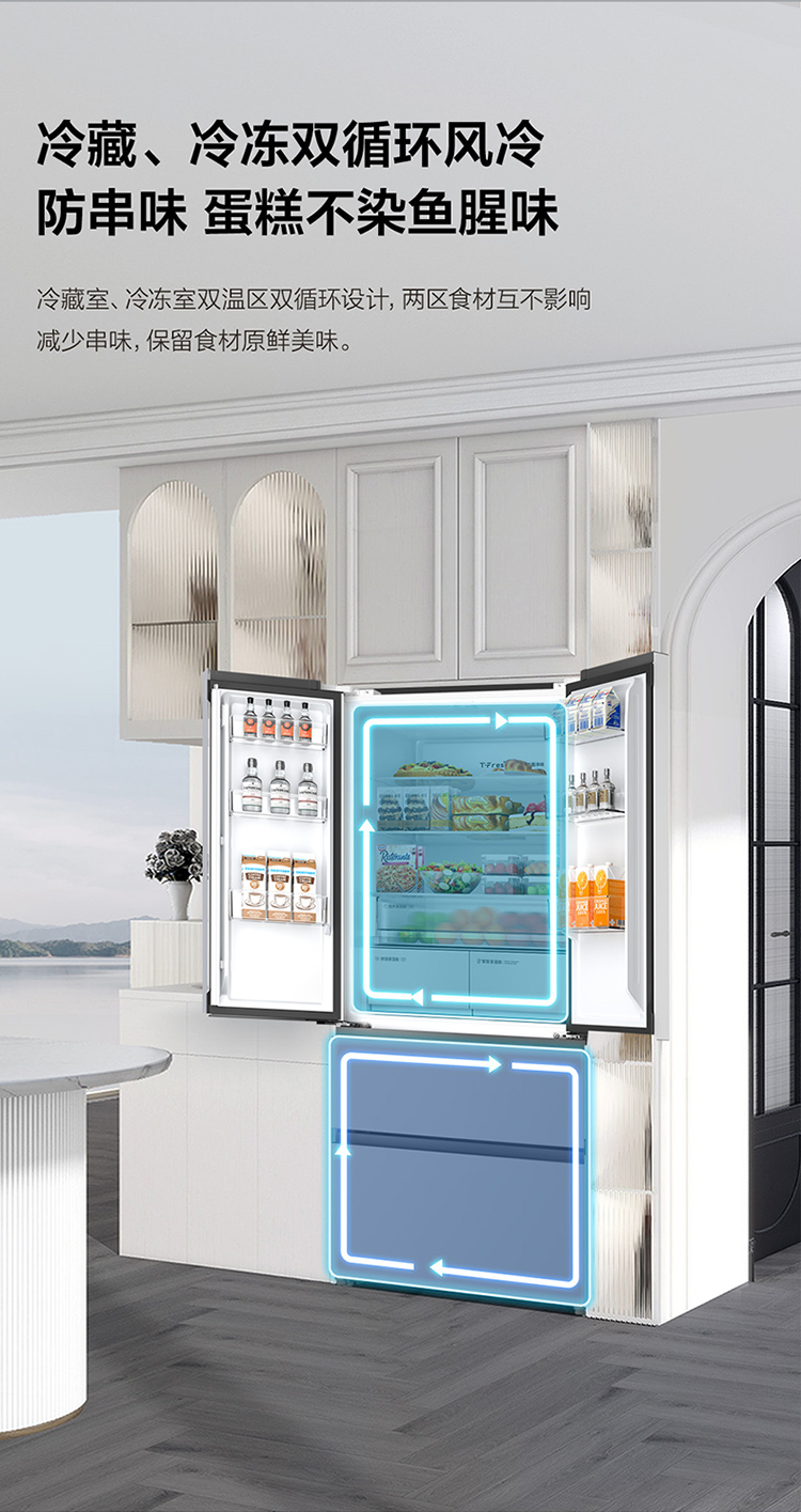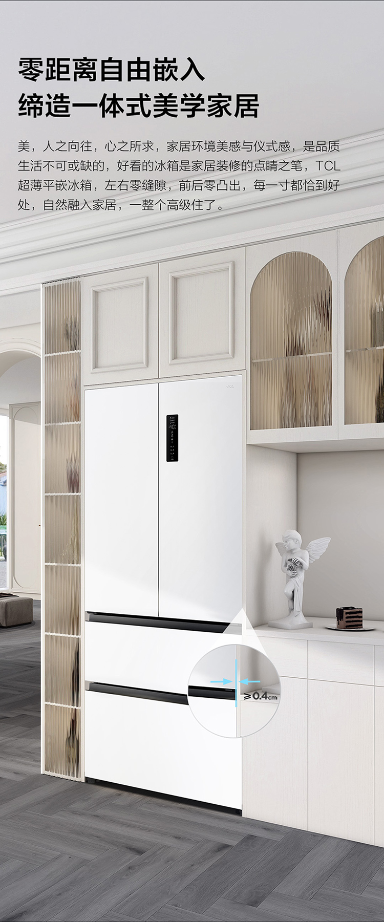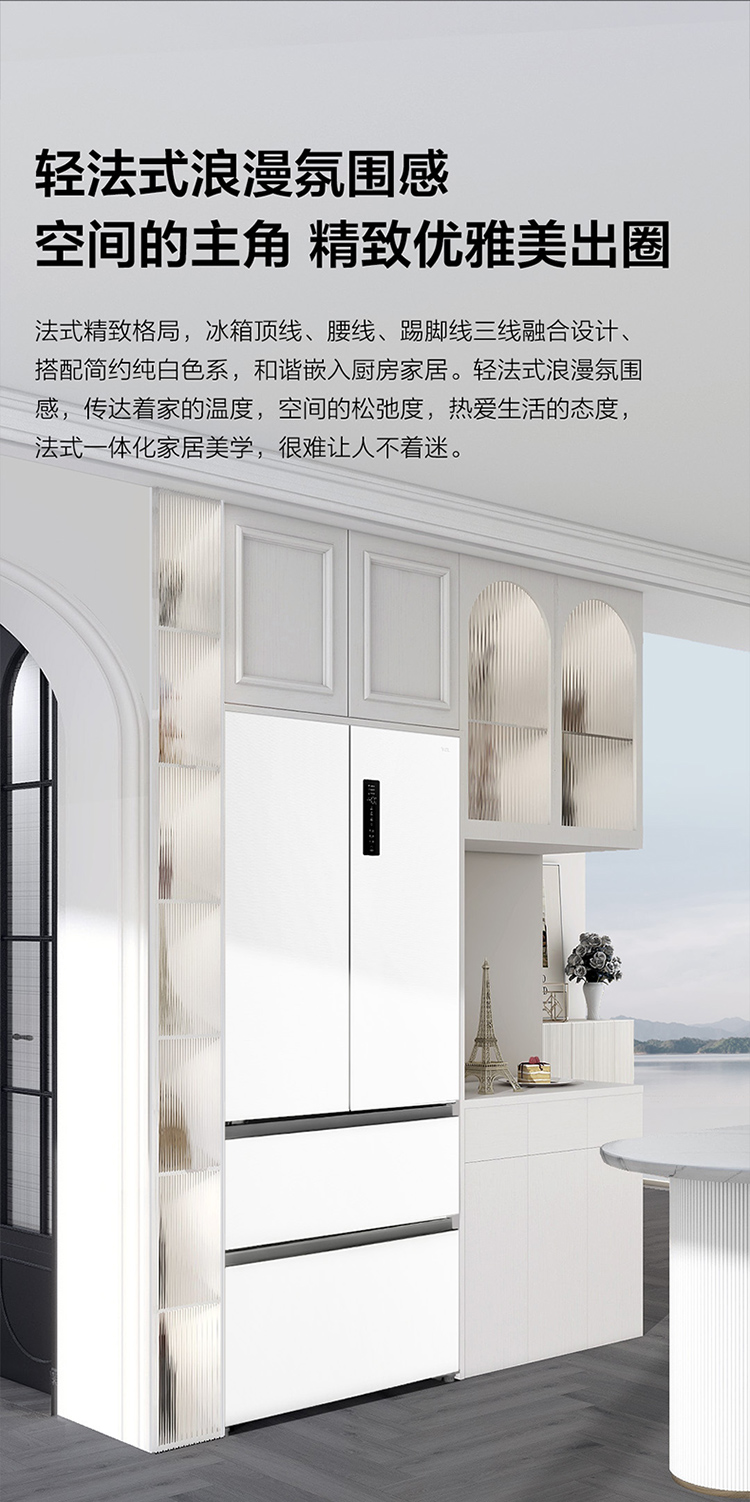 TCL大无界466升T9法式多门四开门58cm超薄零嵌入式底部散热双净味冰箱 R466T9-DQ
