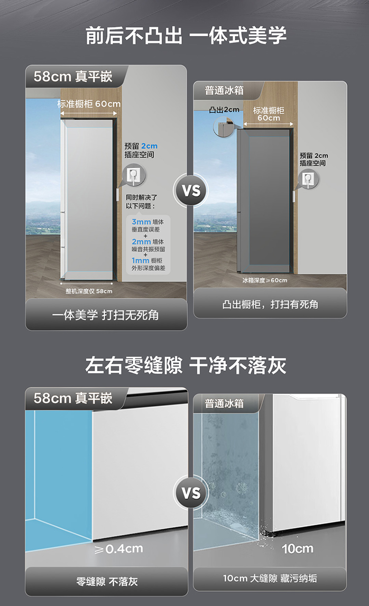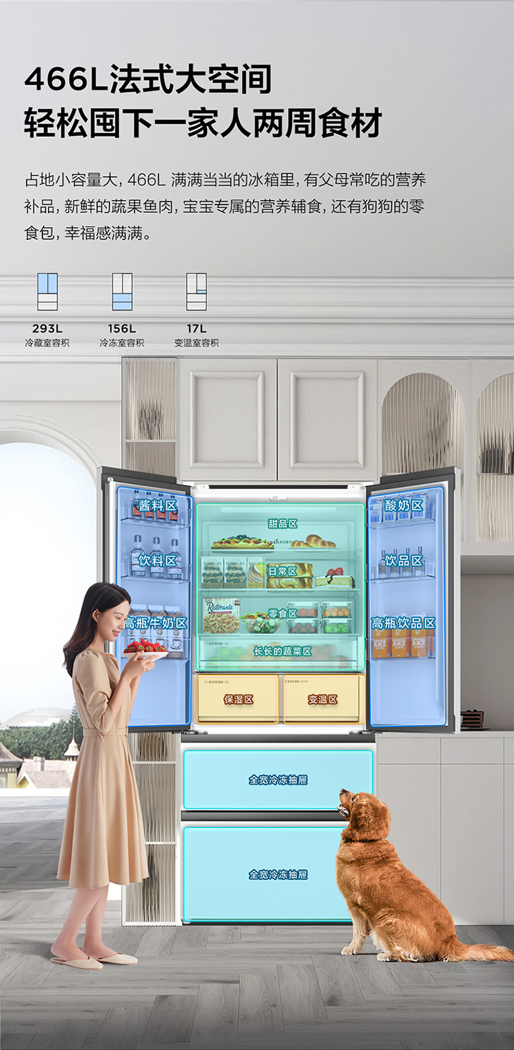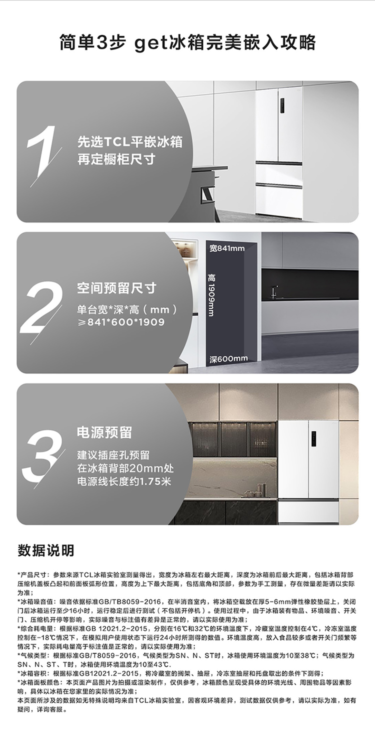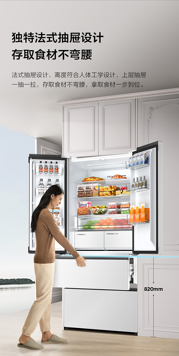 TCL大无界466升T9法式多门四开门58cm超薄零嵌入式底部散热双净味冰箱 R466T9-DQ
