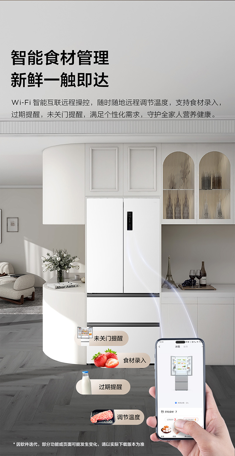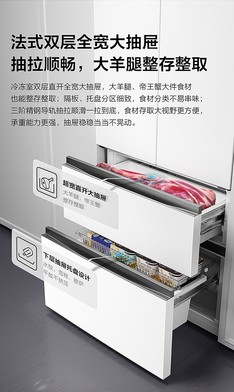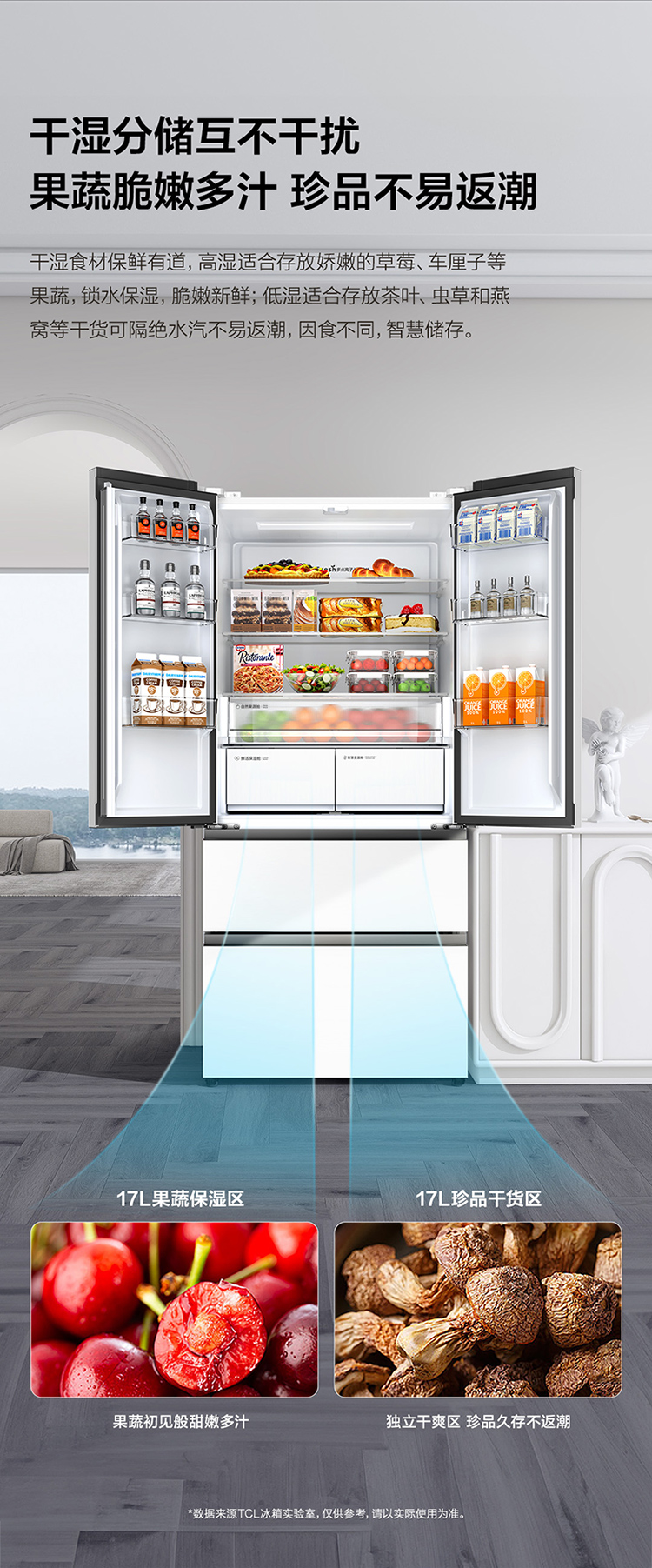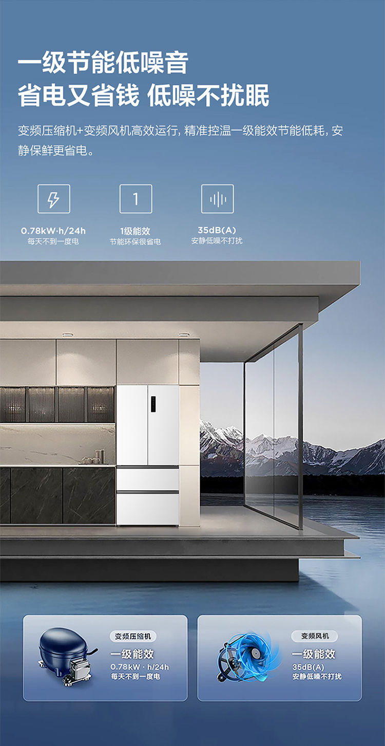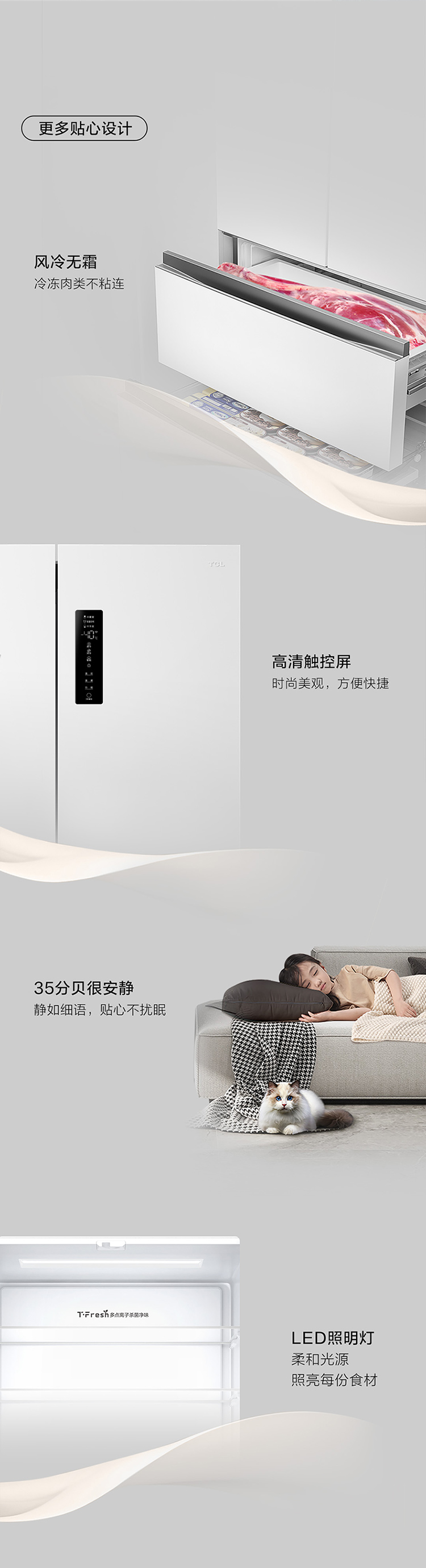 TCL大无界466升T9法式多门四开门58cm超薄零嵌入式底部散热双净味冰箱 R466T9-DQ