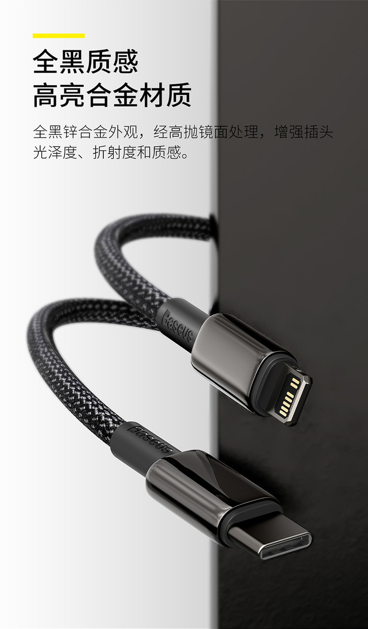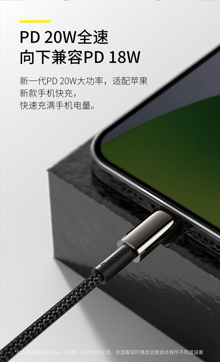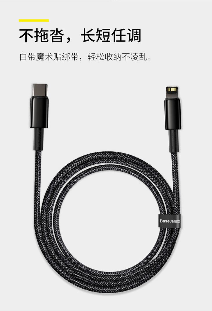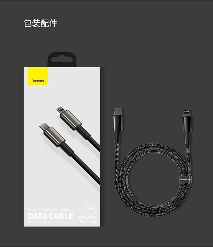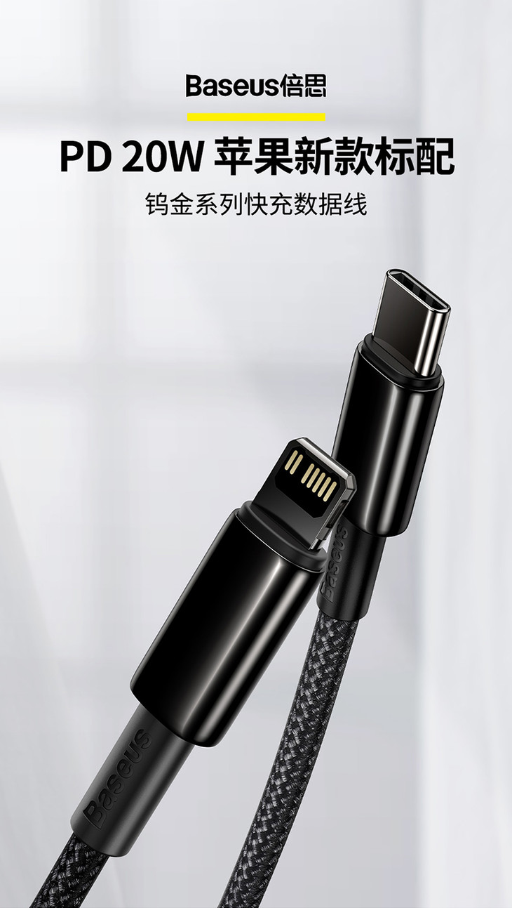倍思 钨金系列数据线 PD快充20W/100W适用于iphone12/X/11/XR/7plus/6s/8充电器手机充电线 苹果PD 20W快充线