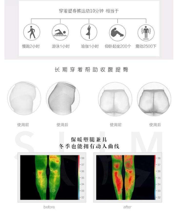 这个裤子有独特的“微胶囊”在穿着摩擦的过程中将瘦身成分渗透进皮肤,加速脂肪燃烧溶解,起到减脂作用。然后裤腿那里还有一个小狗图案,在你运动出汗消耗脂肪的时候,这个小狗就会变色,,真的很神奇