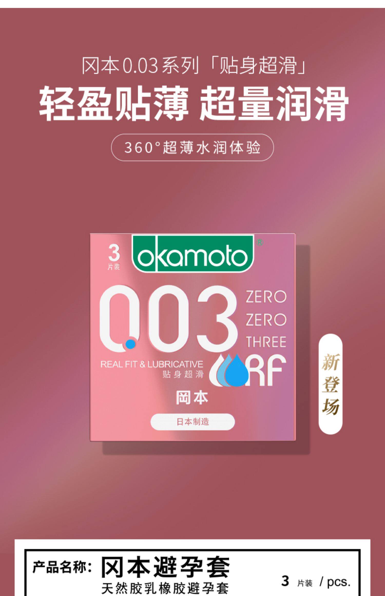 冈本 003贴身超滑避孕套3只装/盒 日本进口安全套