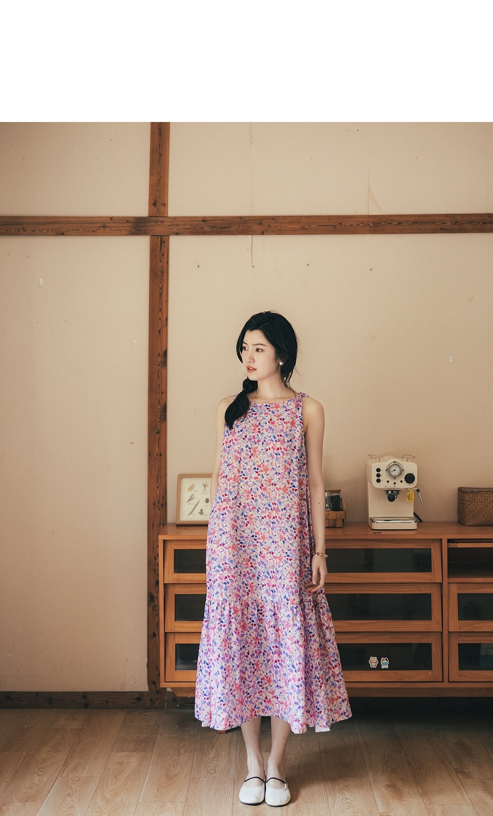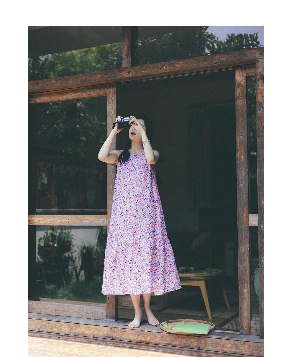绽放女装321朵/【海街日记·美人鱼】亚麻印花背心裙无袖连衣裙夏