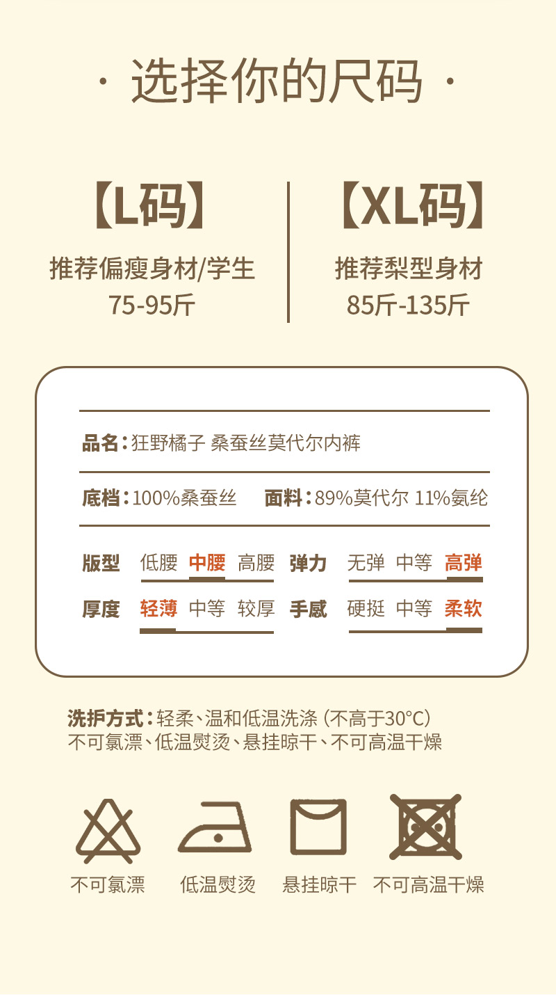 狂野橘子 桑蚕丝莫代尔内裤(一盒7条装)